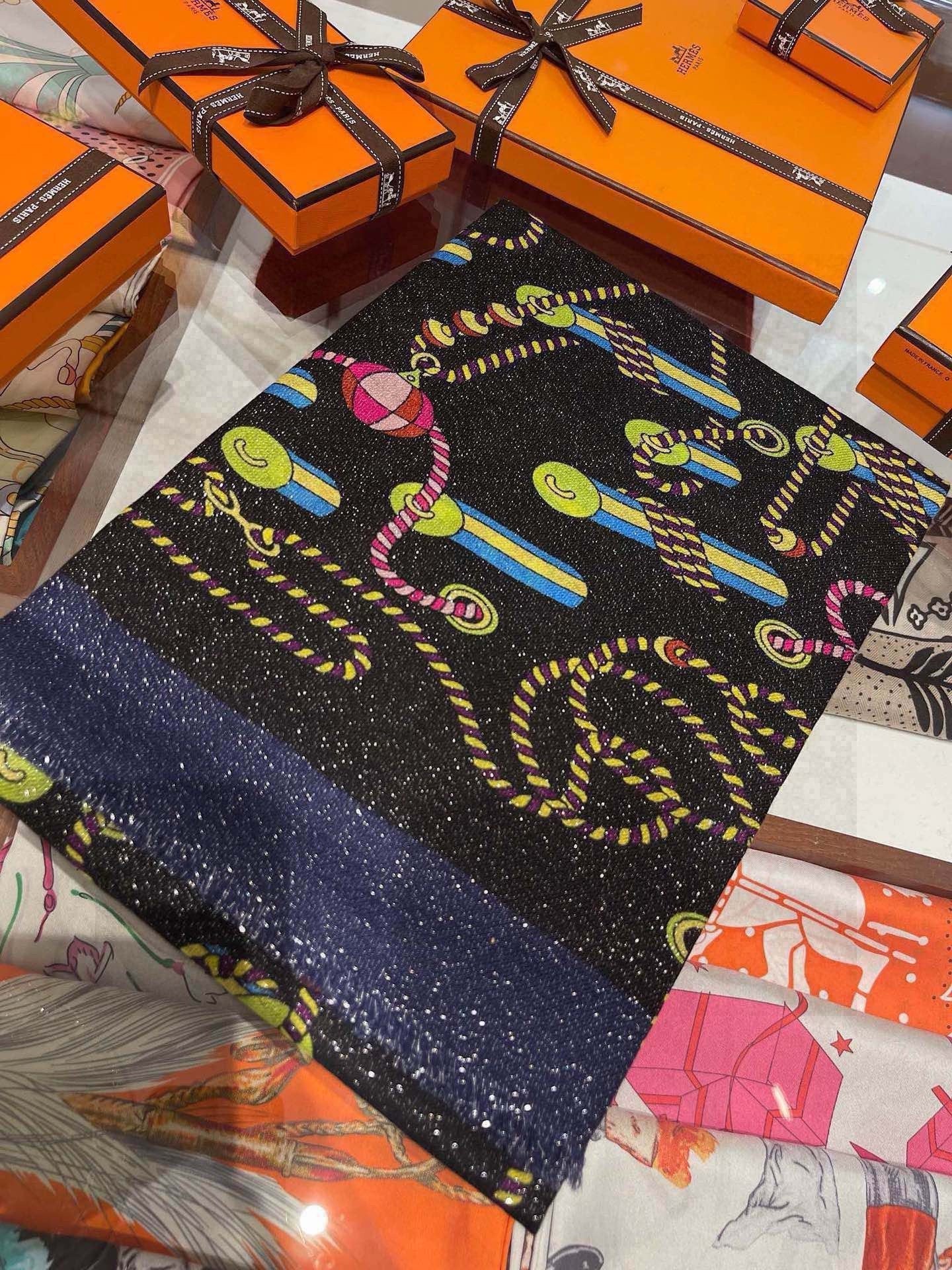 Scarf 200 CM In Black Colorful Cashmere Silk 264152