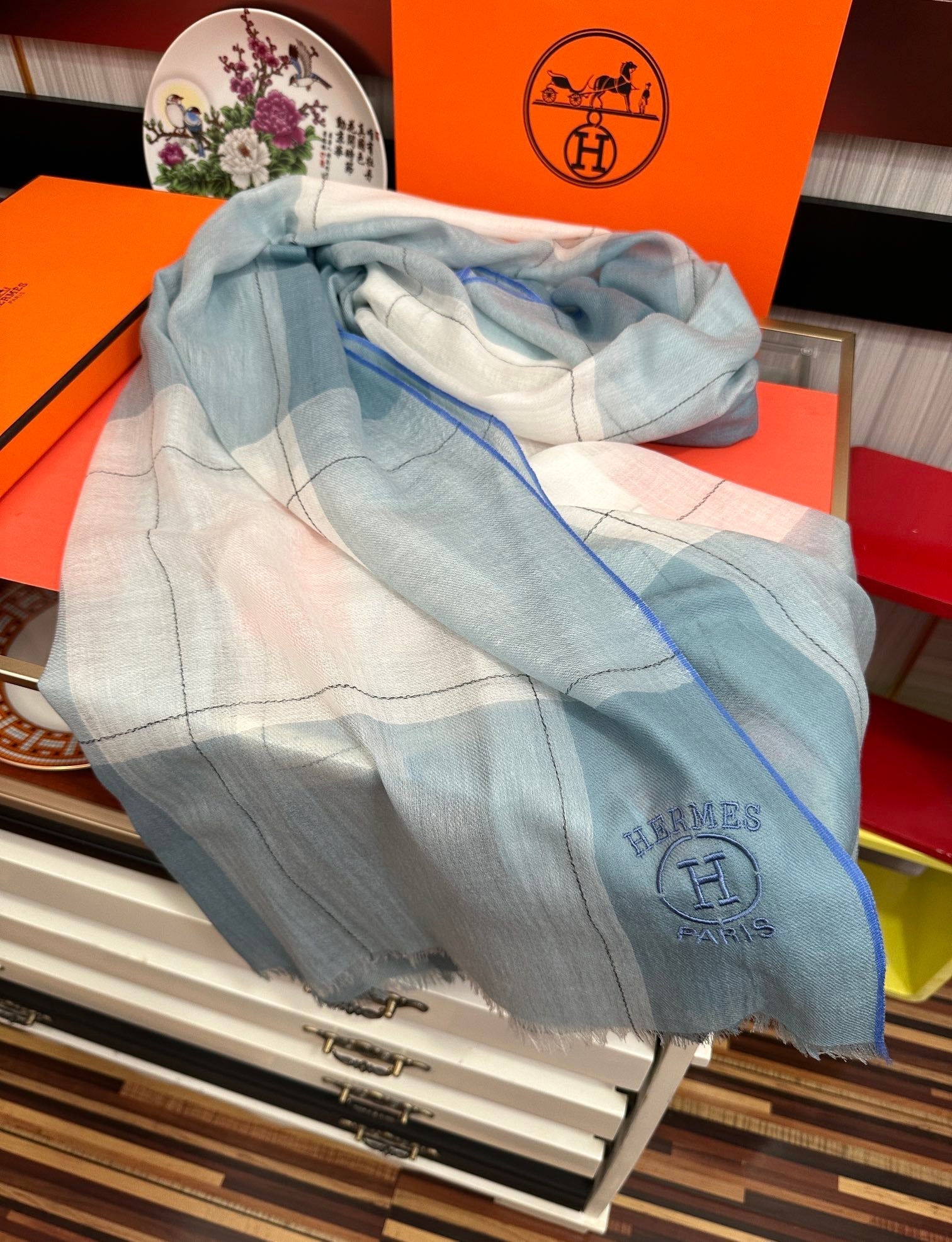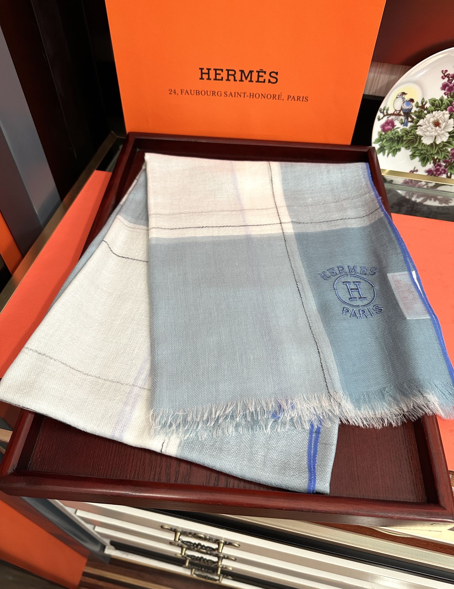 Scarf 90 Cm Light Blue Mix White Caro Cashmere
