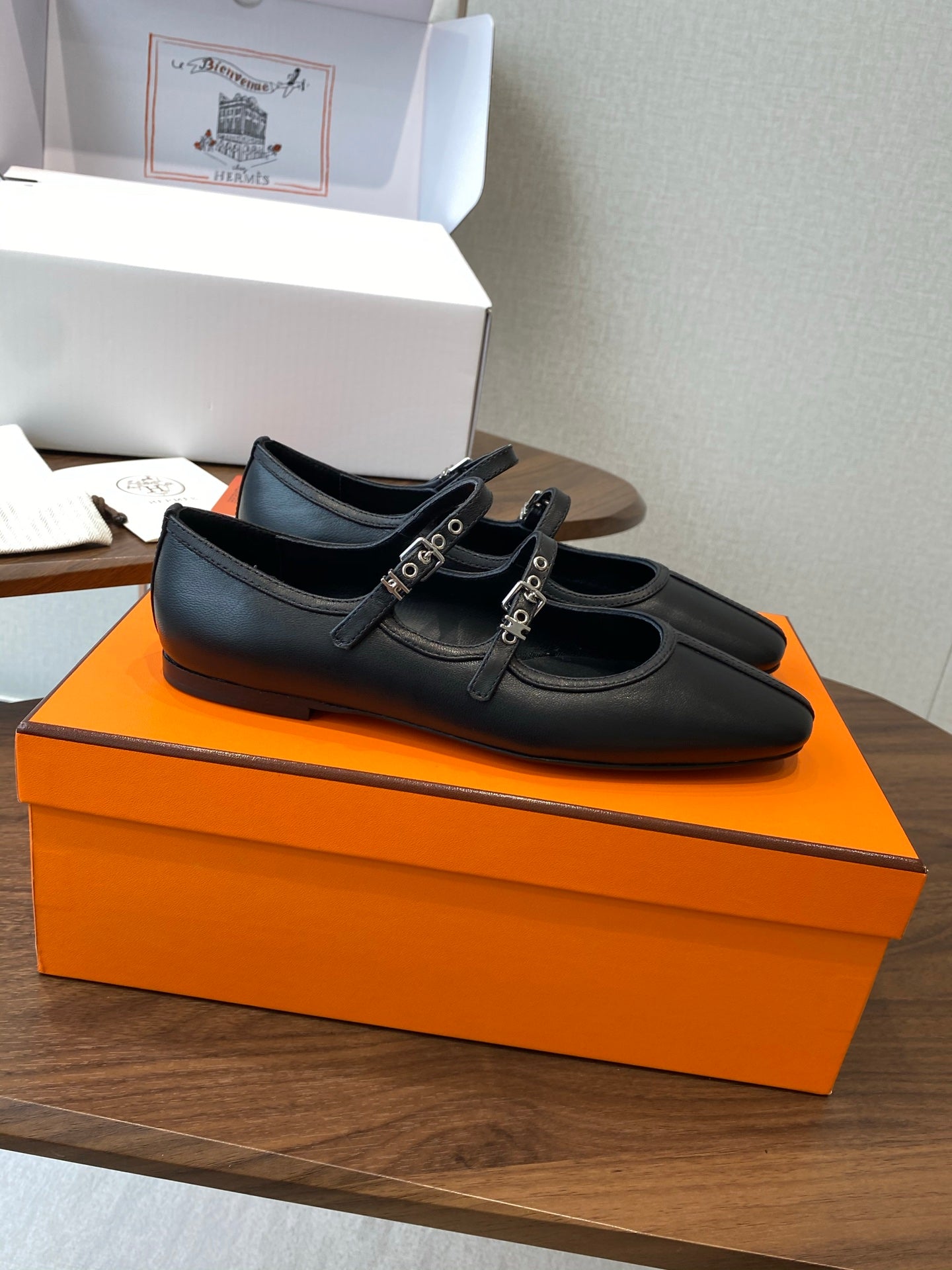 HM 25s Mary Jane Double Strap Black Calfskin 422565