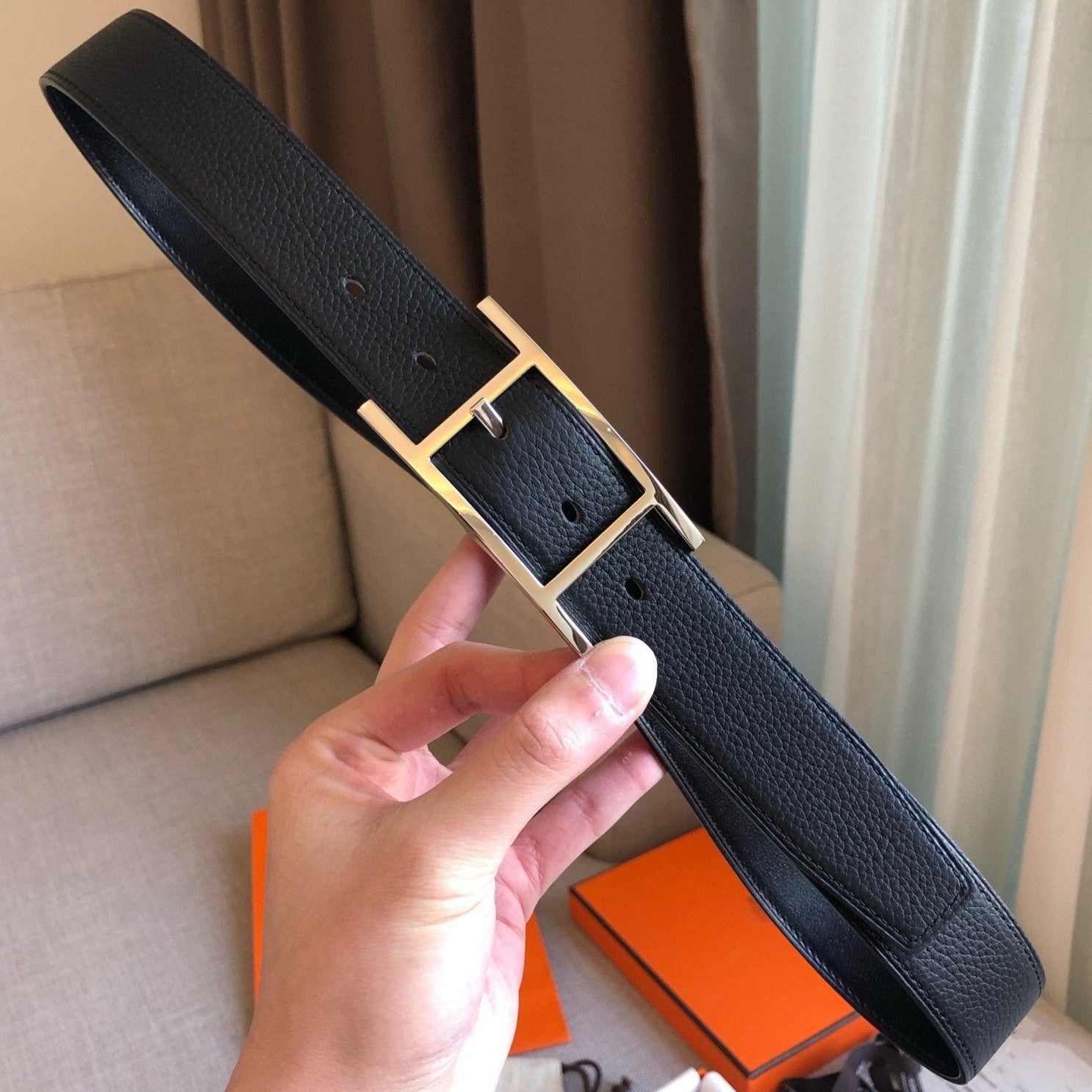 H BELT SILVER BLACK LEATHER REVERSIBLE 3.2CM