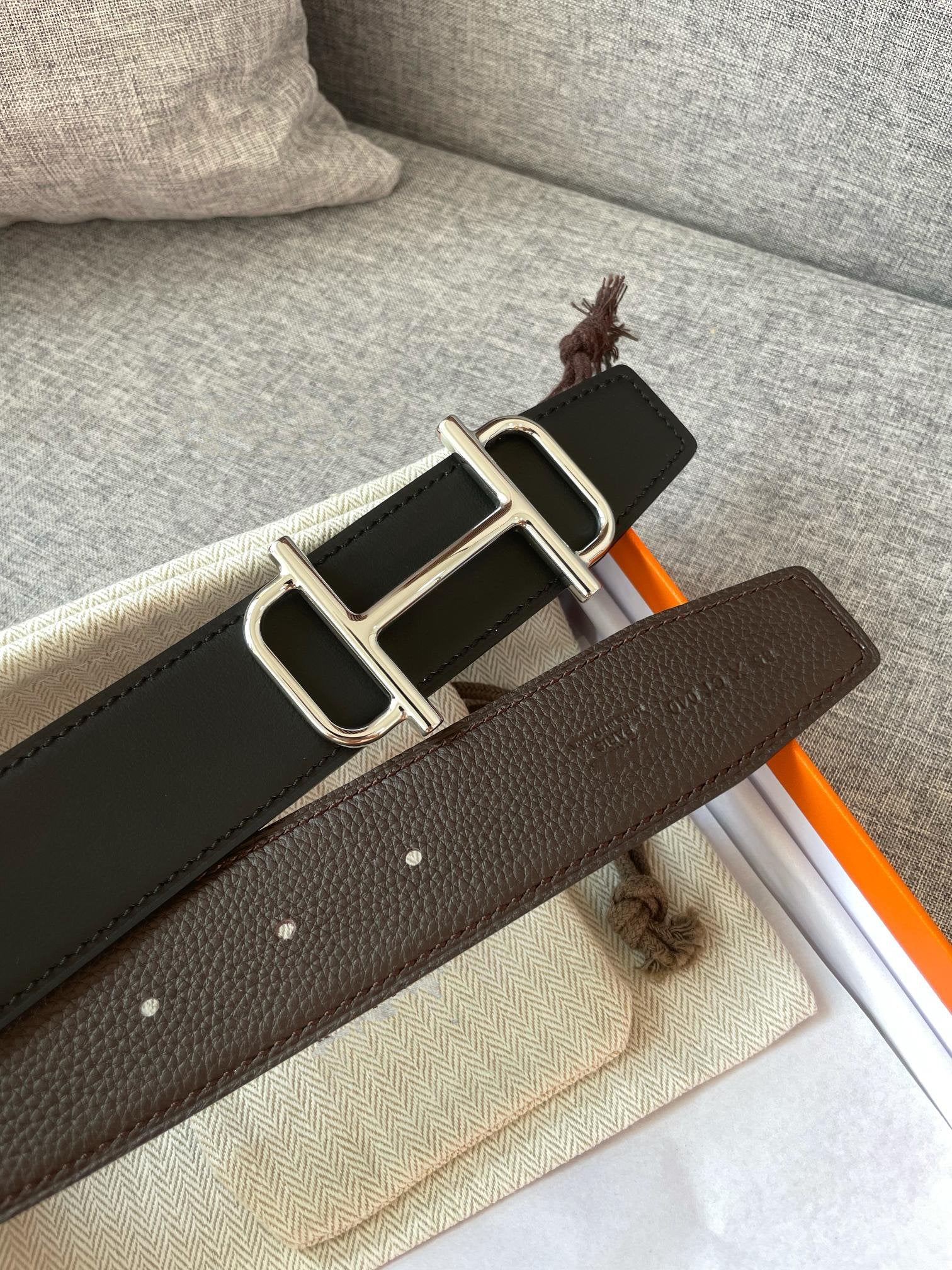 H BELT REVERSIBLE BLACK BROWN LEATHER 3.8CM