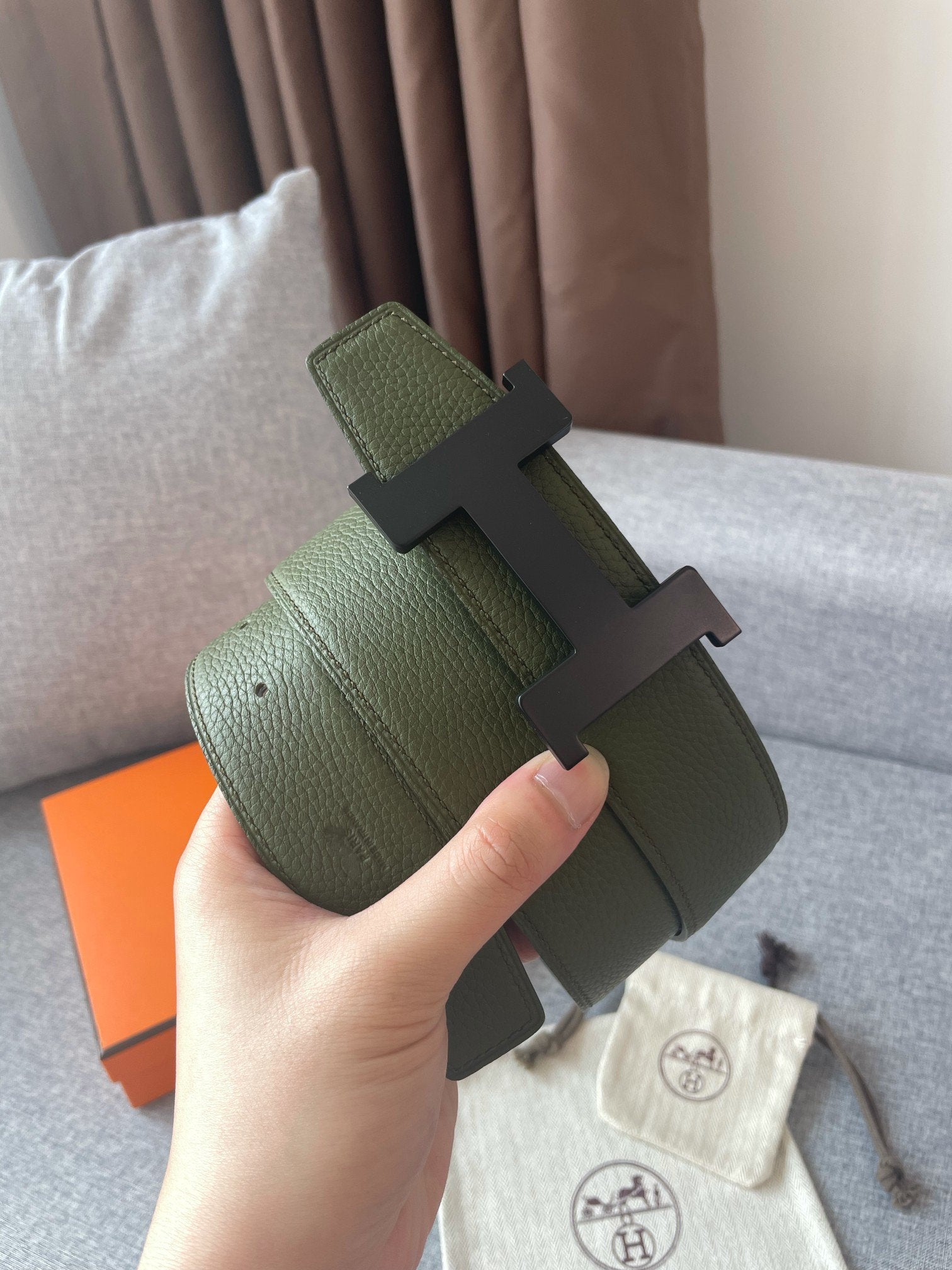 H CONSTANCE REVERSIBLE BELT 38MM BLACK BUCKLE BLACK GREEN LEATHER