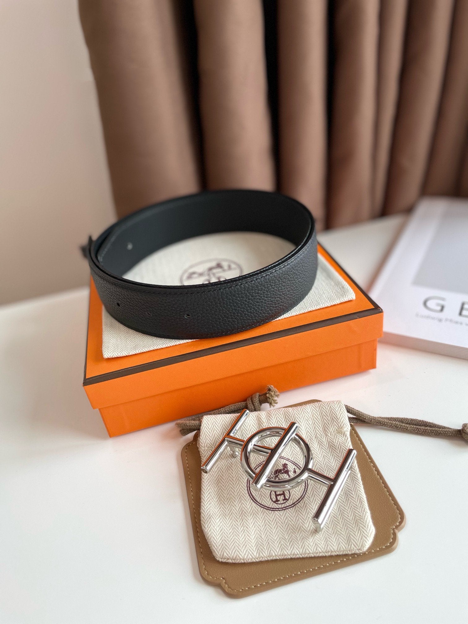 H ULYSSE BELT 38MM SILVER BUCKLE BLACK LEATHER