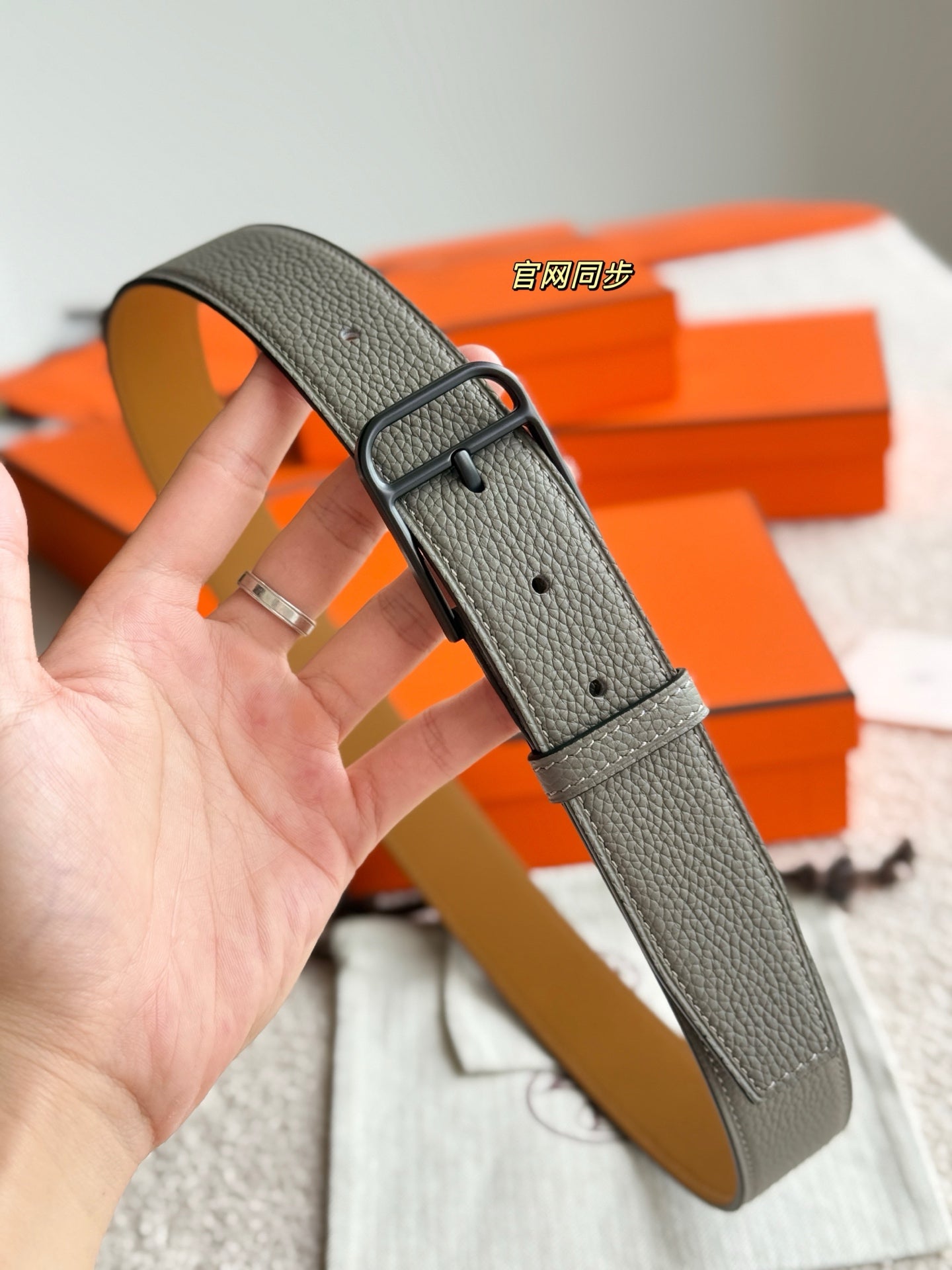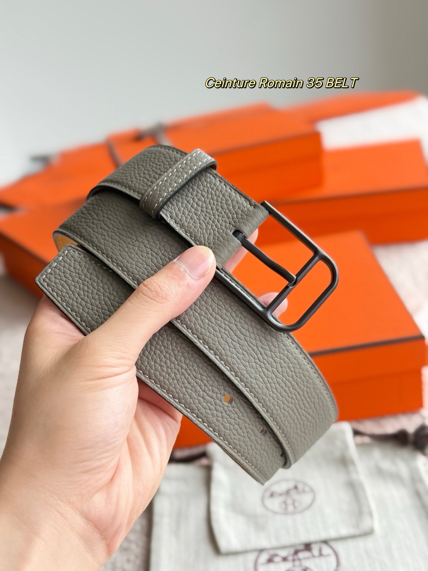 HM 35mm Romain Belt Meyer gray Leather 188394