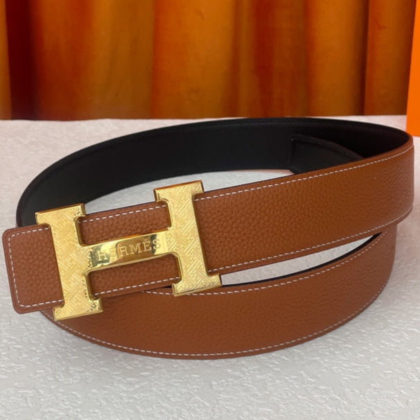 HM Gold Buckle H Belt 38mm Brown Calfskin 187183