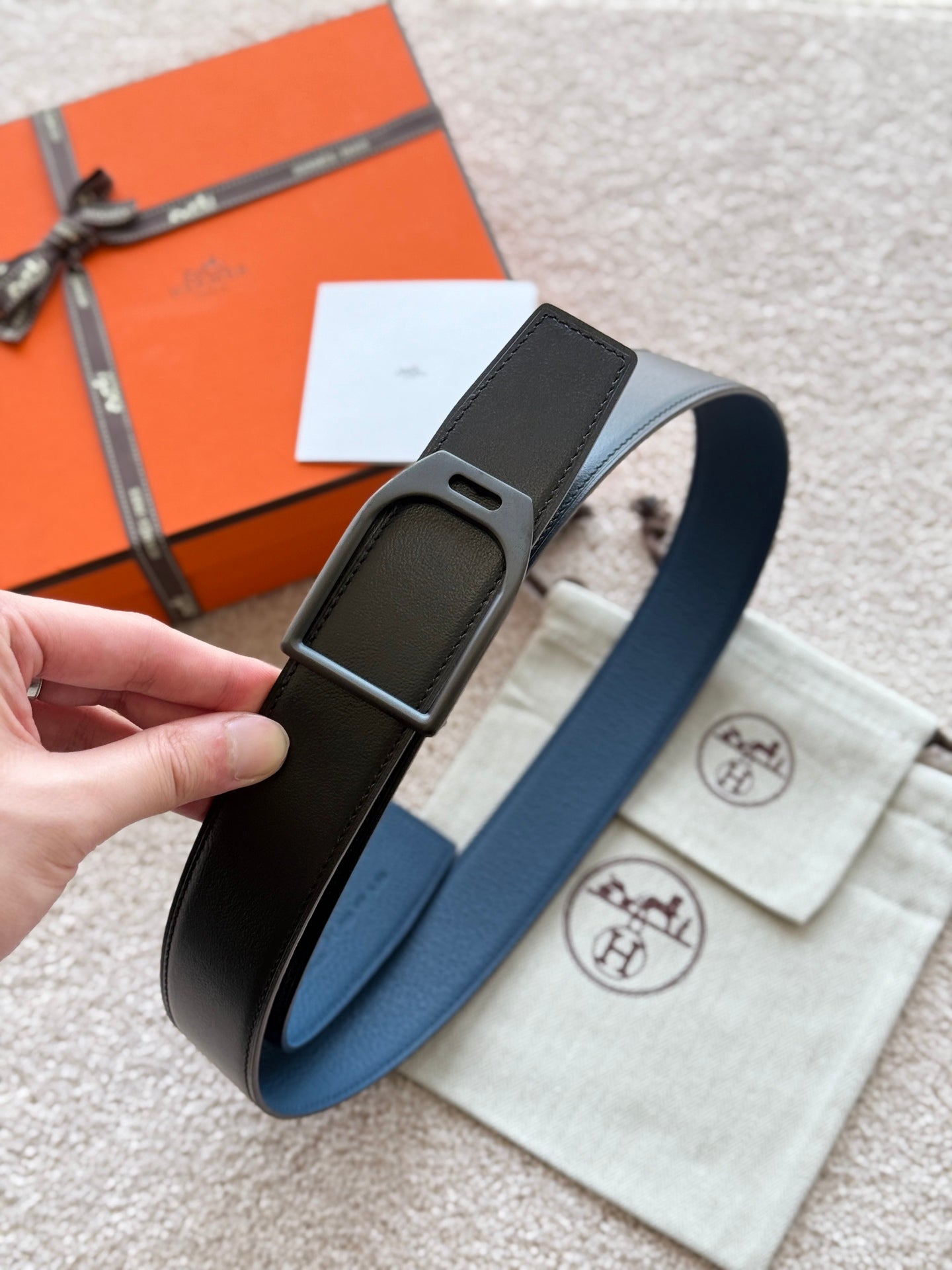 HM Jockey Buckle Belt 38mm Prussian blue Black Leather 187521
