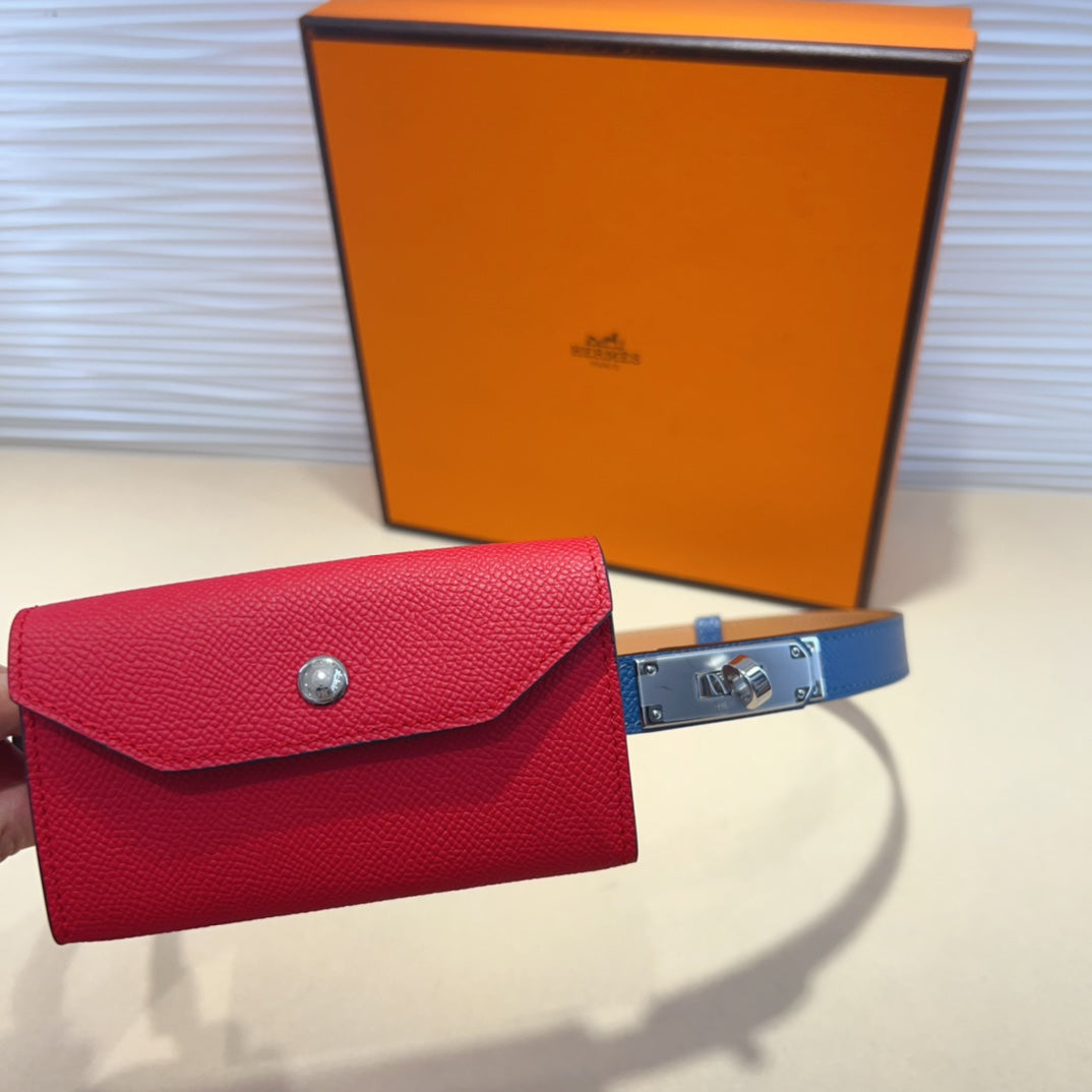 HM KELLY CHERRY RED POCKET 18MM BELT NAVY BLUE LEATHER SILVER HARDWARE