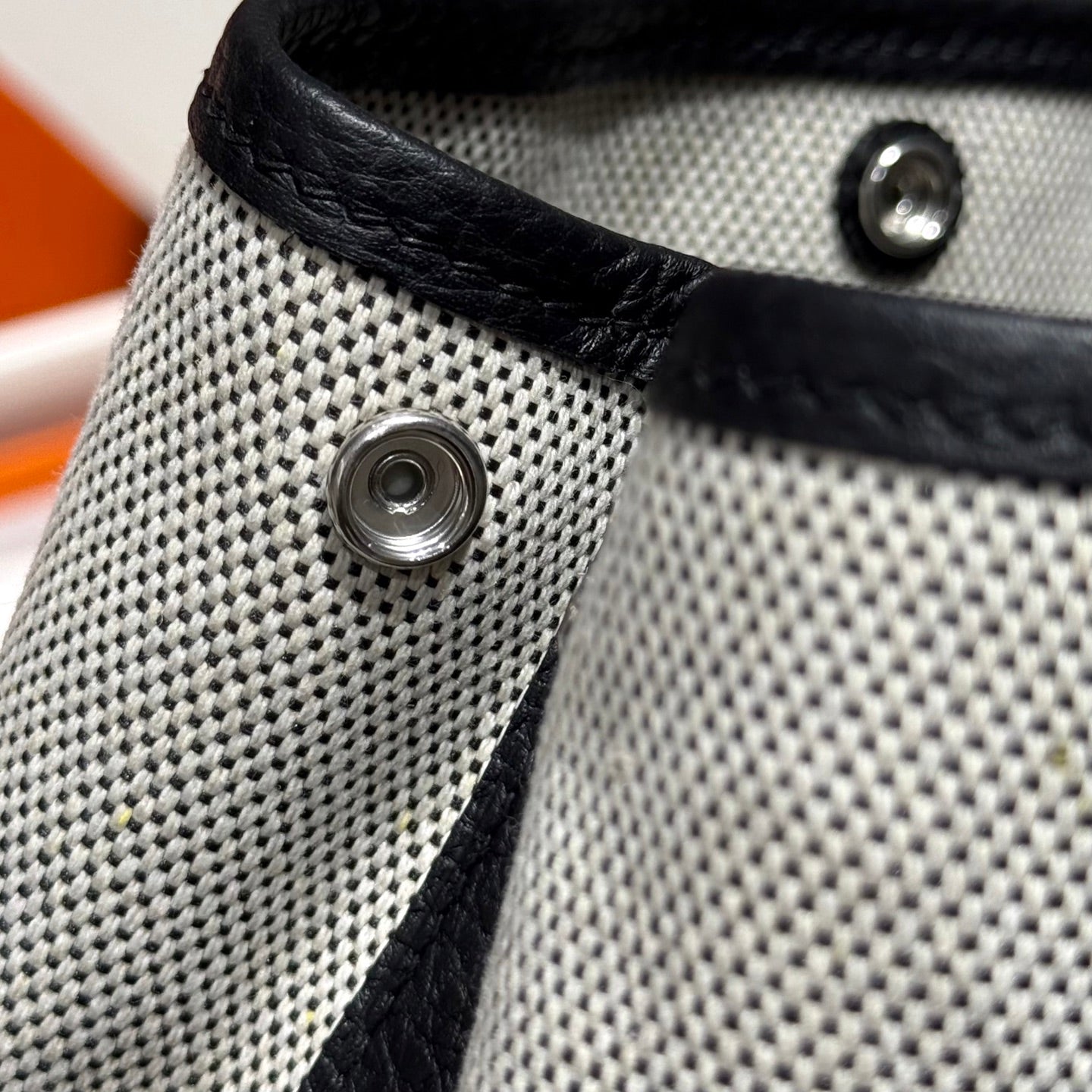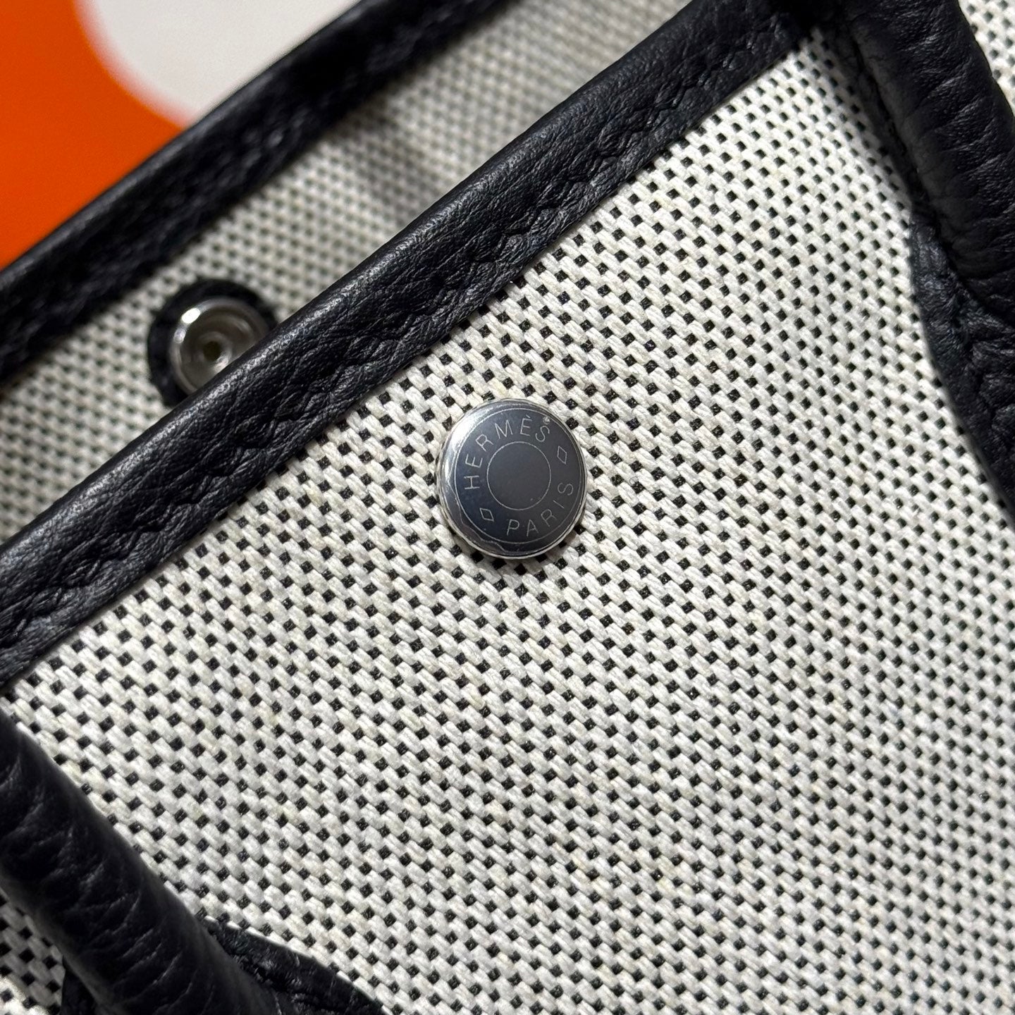 HM Garden Party Mini 23cm Bag Black Togo Cream Canvas