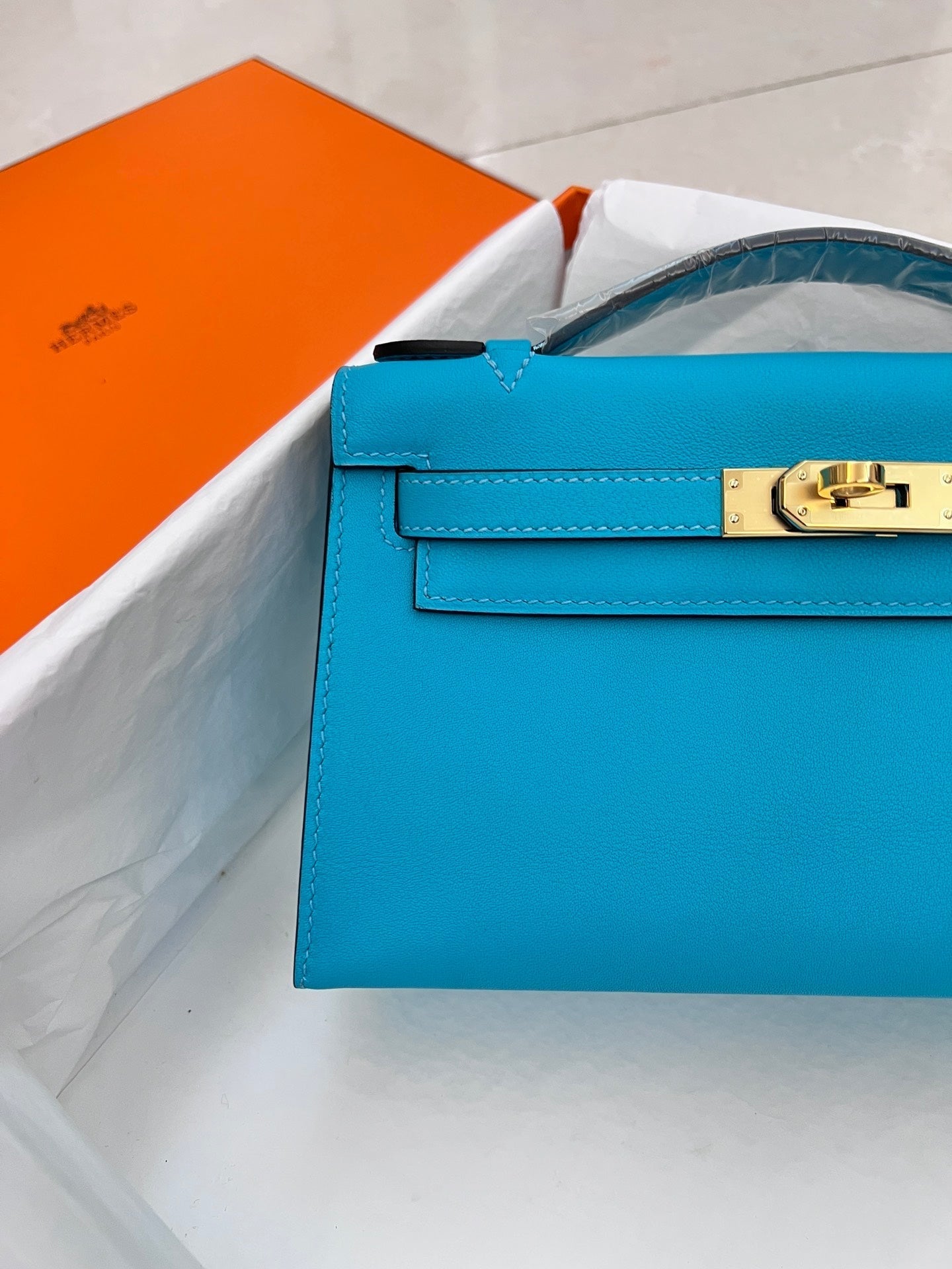 HM KELLY POCHETTE 22CM CERULEAN SWIFT GOLD HARDWARE