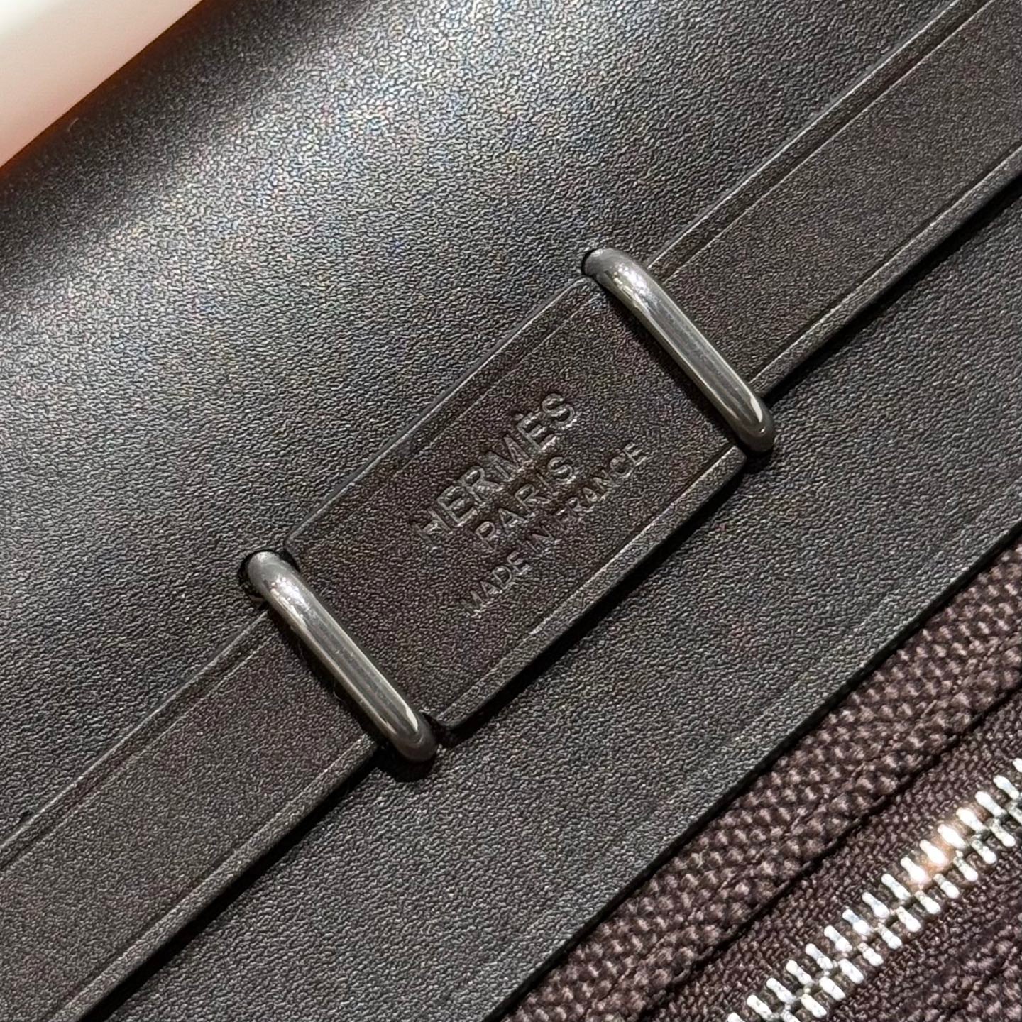 HM Mini Herbag Silver Buckle 20 Dark Brown Canvas and Hunter Cowhide 243305