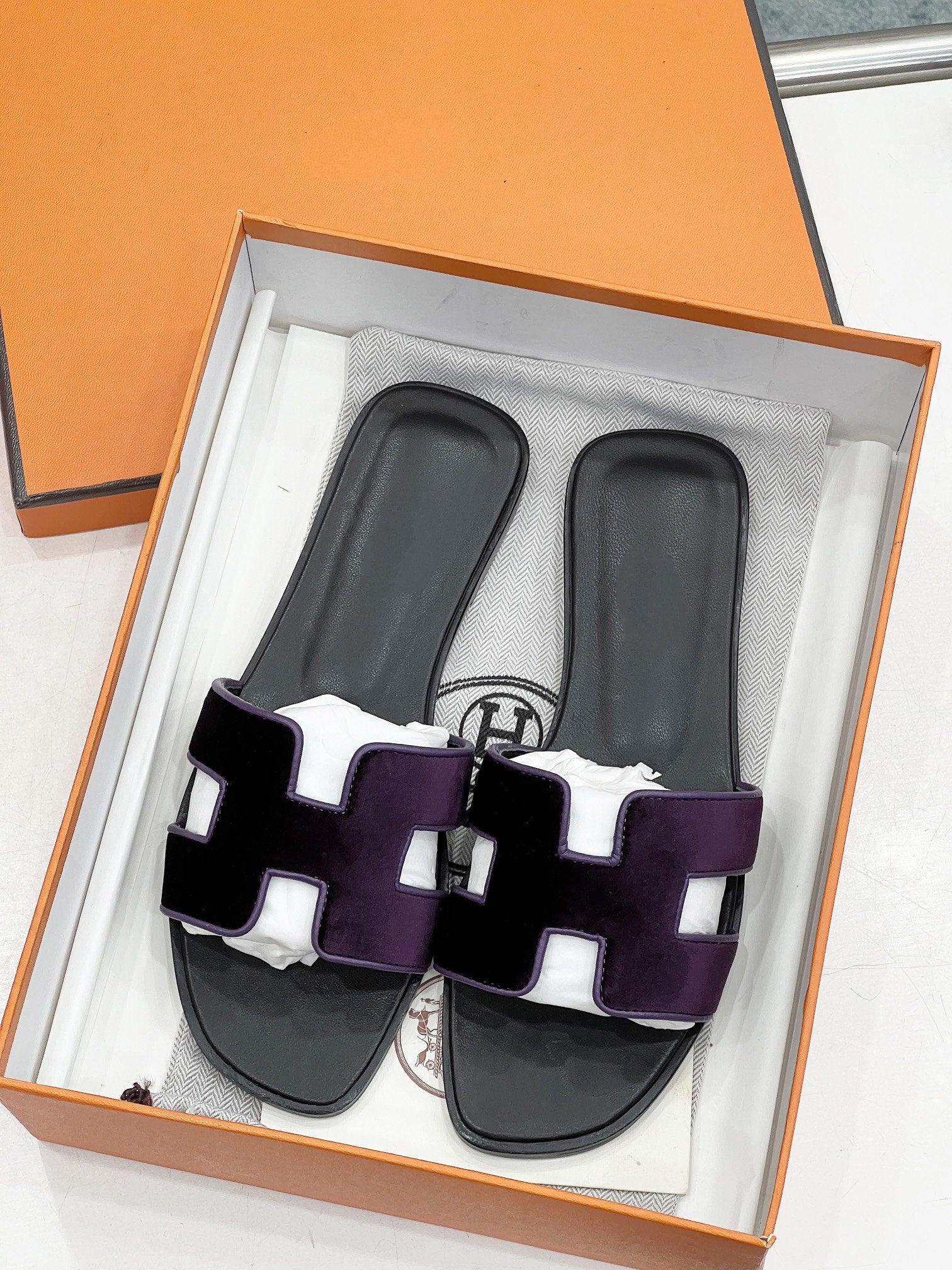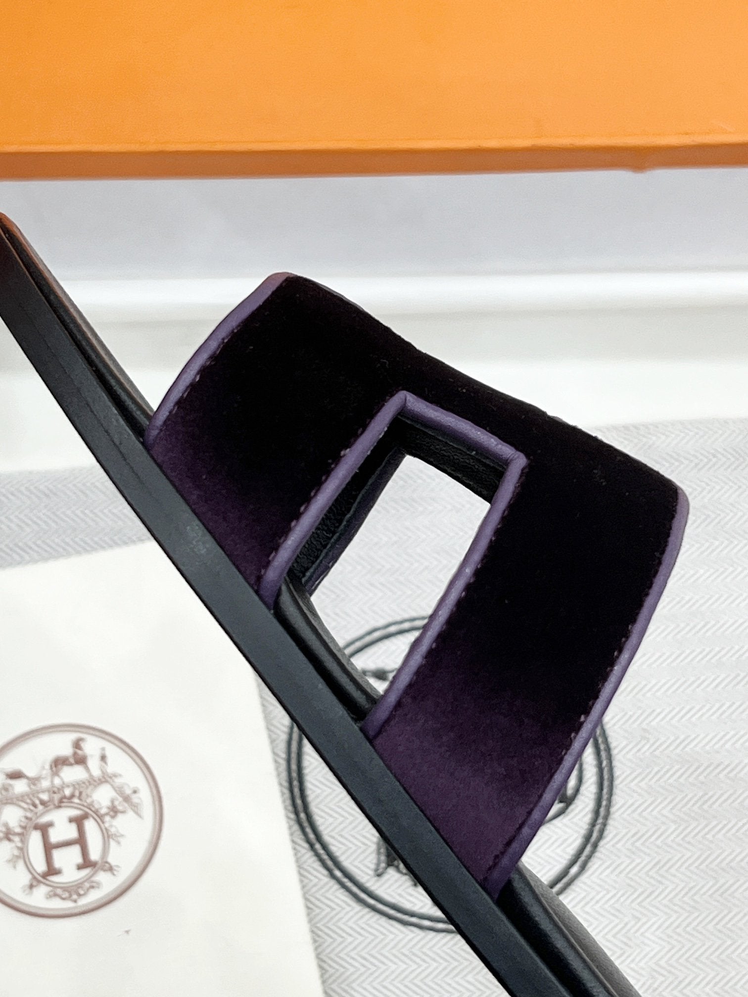 • Material: Sandal in velvet goatskin with iconic "H" cut-out.