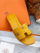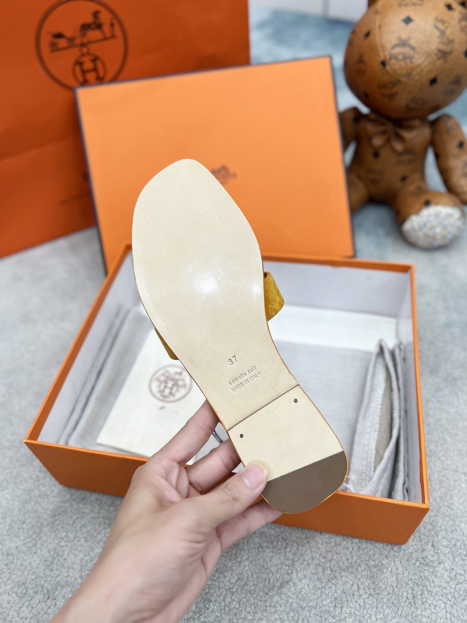 • Material: Sandal in suede goatskin with iconic "H" cut-out.