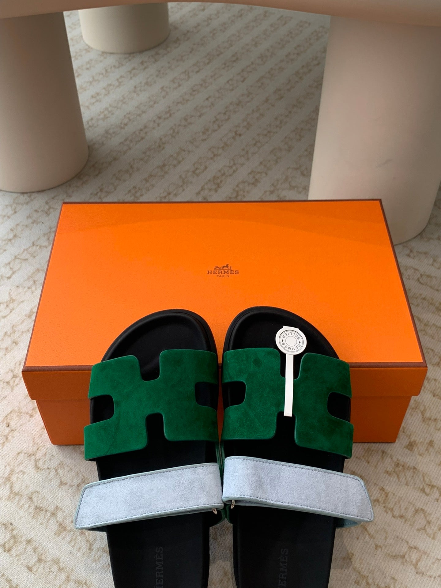 chypre sandal dark green cloud blue suede black calfskin