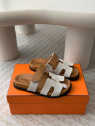 chypre sandal white canvas brown calfskin