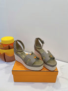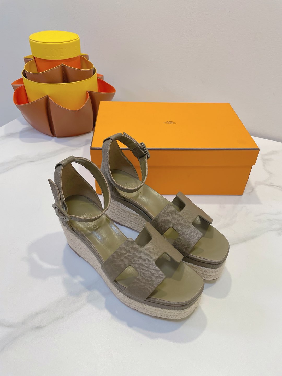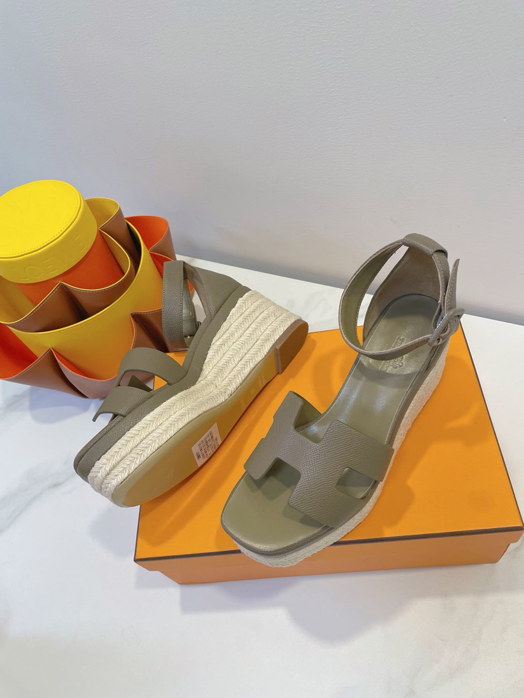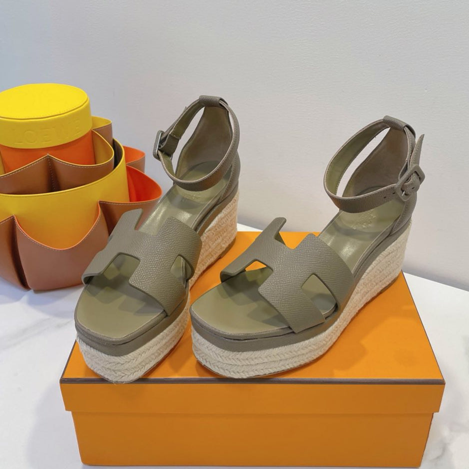 - Material: Cowhide, wedged rope heel