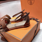 - Material: Sandal in Clafskin with straight cut edges, "H" cut-out detail and thin ankle strap.