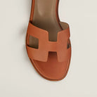 • Material: Sandal in calfskin with straight cut edges, "H" cut-out detail and thin ankle strap.