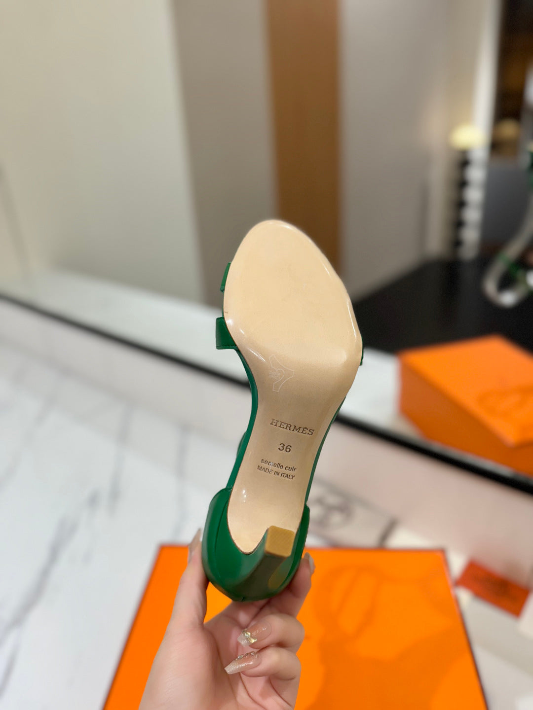 HM Joy 90mm Heeled Sandals Green Flat Cowhide 294920