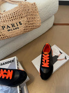 BOUNCING SNEAKERS BLACK CALFSKIN WITH ORANGE LACES