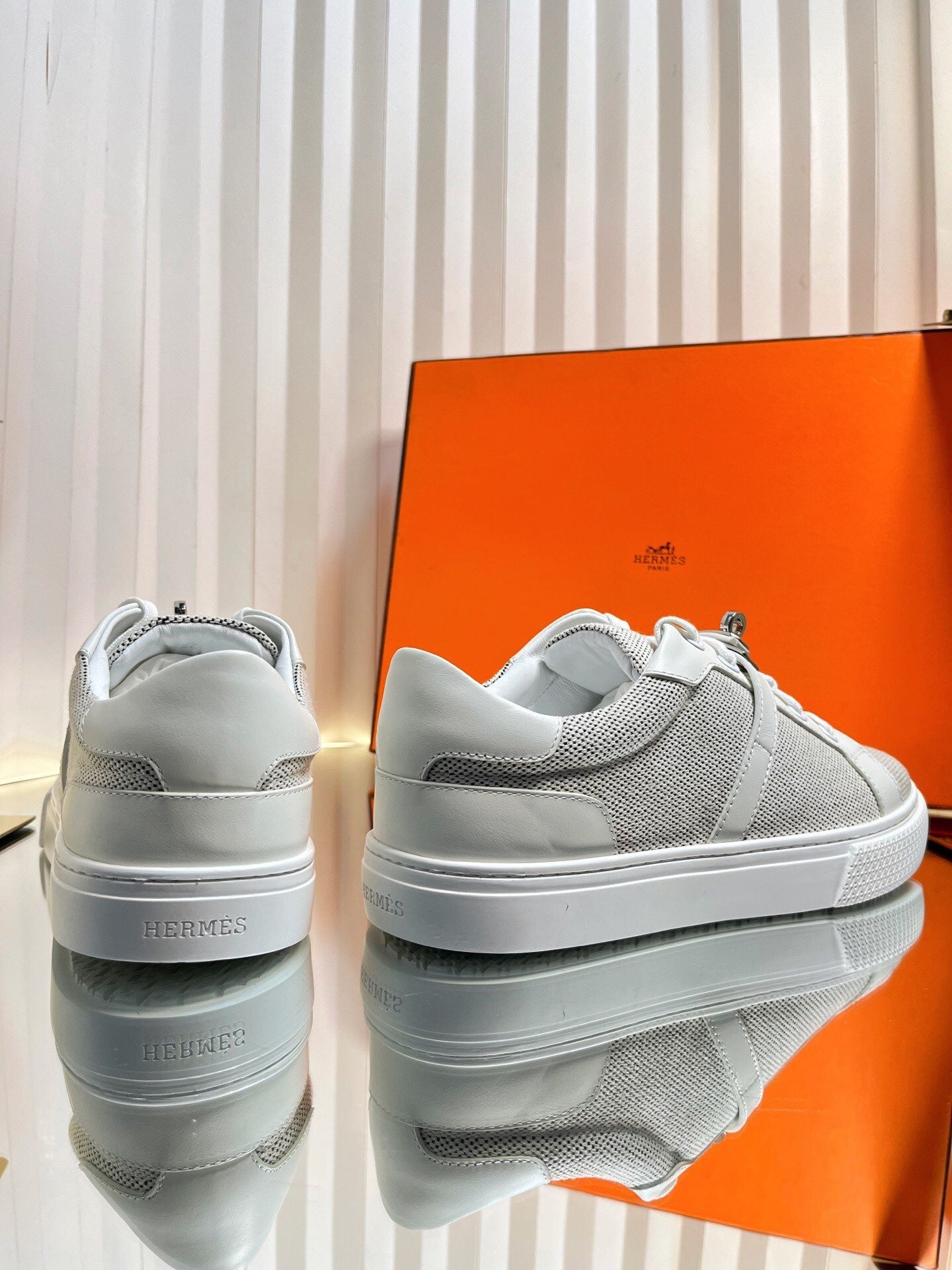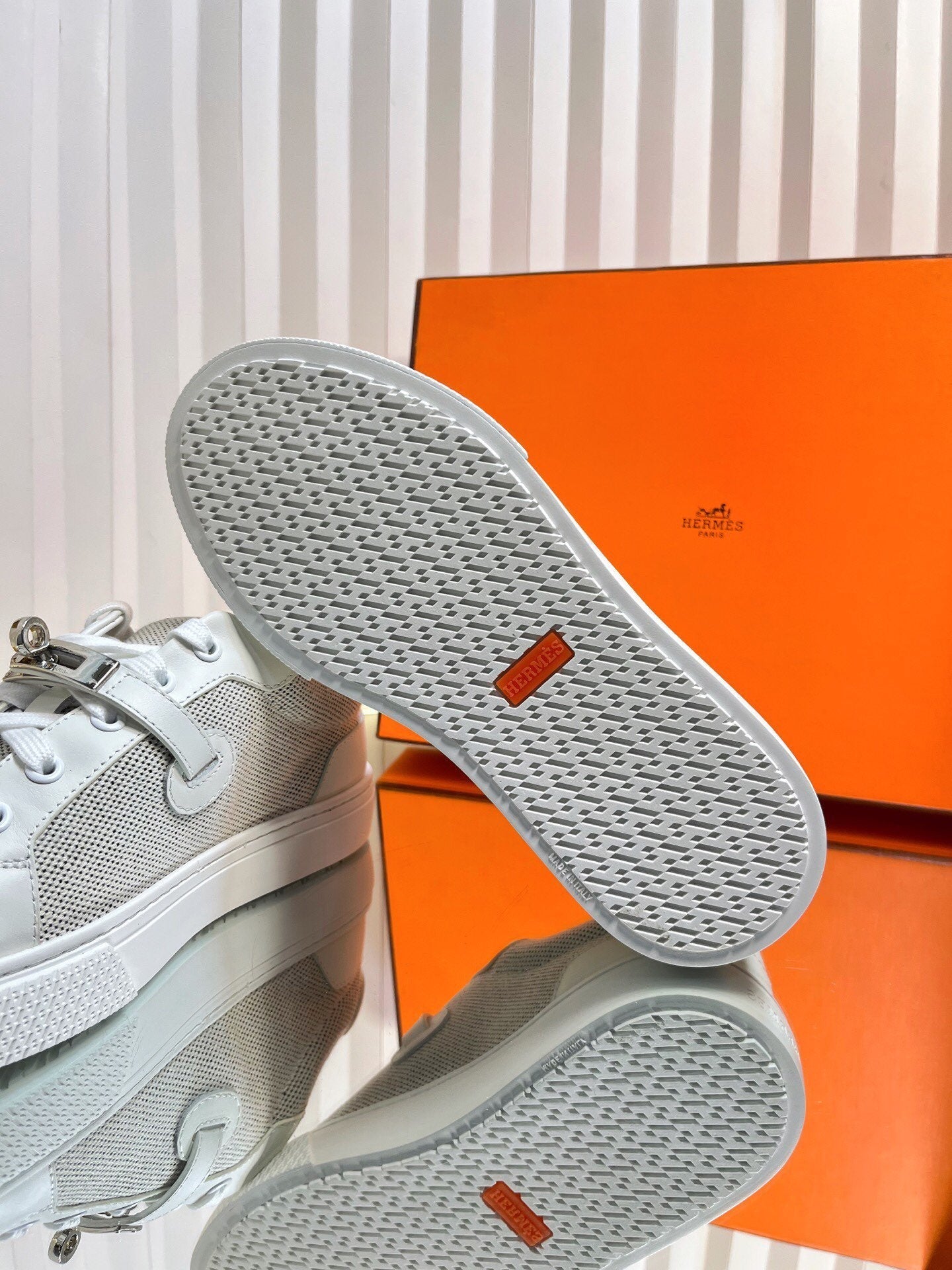 HM Kelly Sneaker White Cowhide Fabric 317055