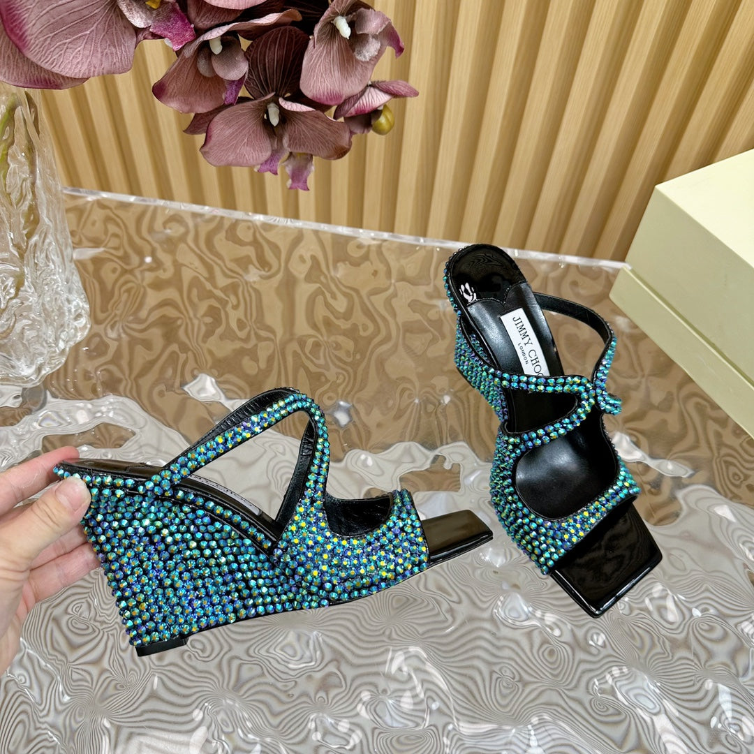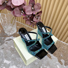 Jimmy Anise 105mm In Dark Green Pearl Studded Lambskin Mules 581534