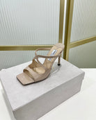 Jimmy Anise 85 In Light Pink Beige Glossy Cowhide Mules 587690