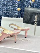 Jimmy Bing 65mm In Rose Pink Stone Studded Cowhide Mules 593198