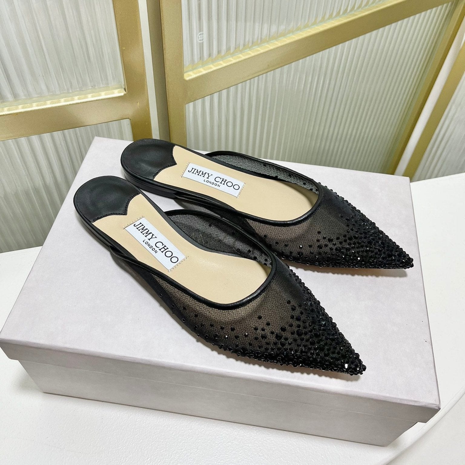 Jimmy Mule In Black Mesh Fabric With Swarovski Crystal 597874
