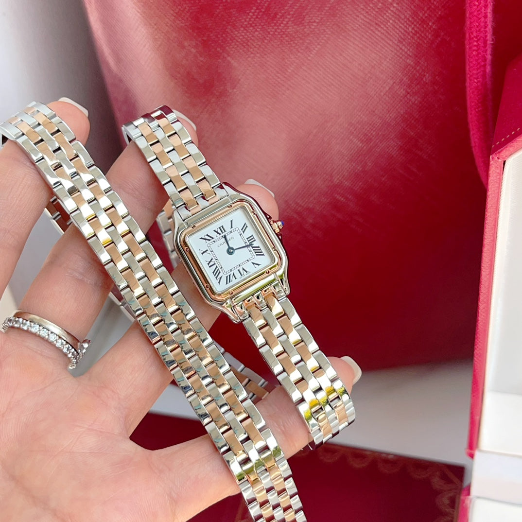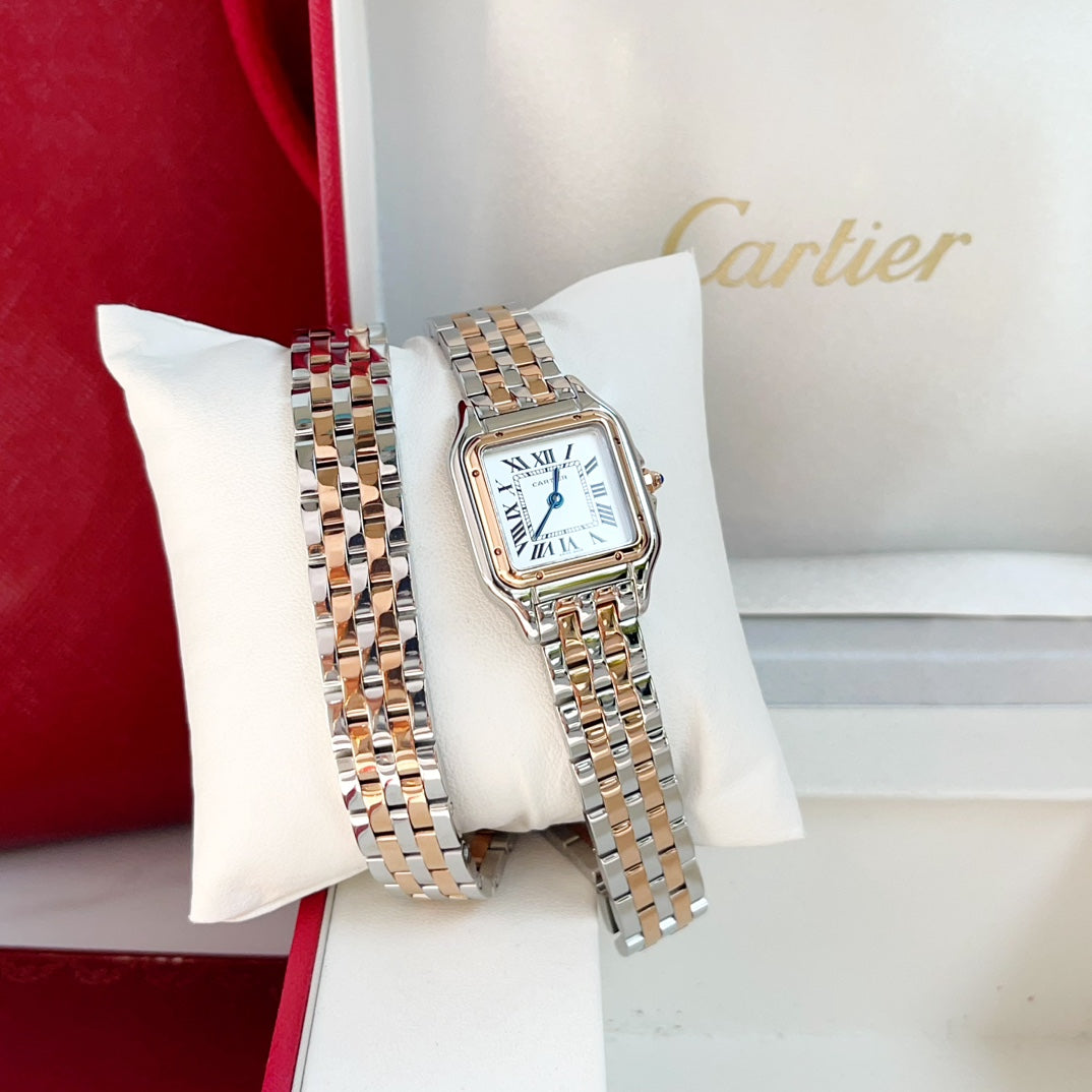 Panthere 22mm Pink Gold Silver Double Chain 44cm