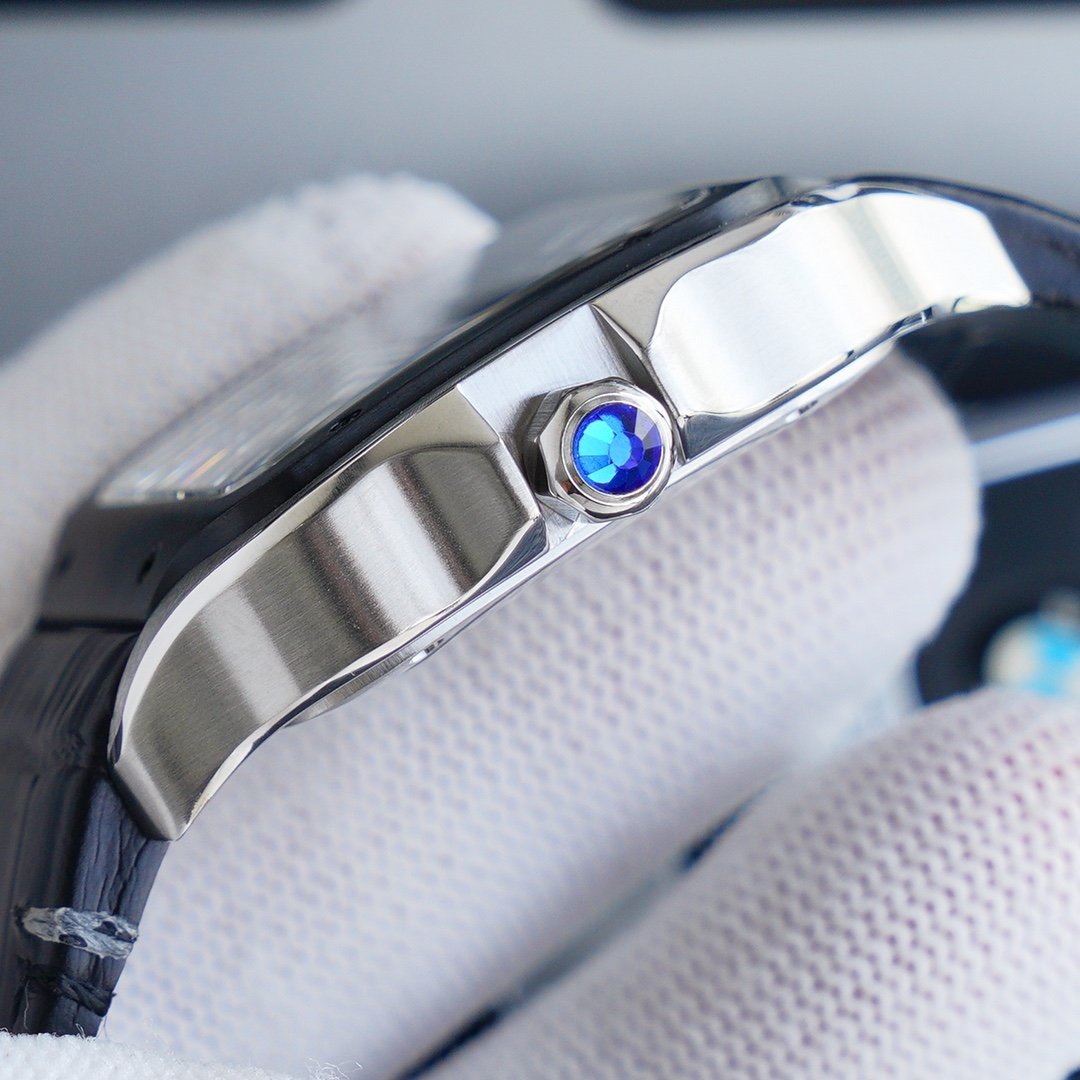 SANTOS 40MM STAINLESS STEEL BLACK BEZEL LEATHER STRAP