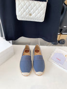 CHLOÉ LOAFER SHOES IN PIGEON BLUE DENIM AND WOVEN RAFFIA