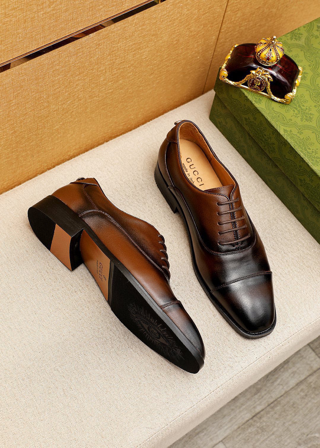 GG Men's Dress Shoe Brown Mix Black Calfskin 742980