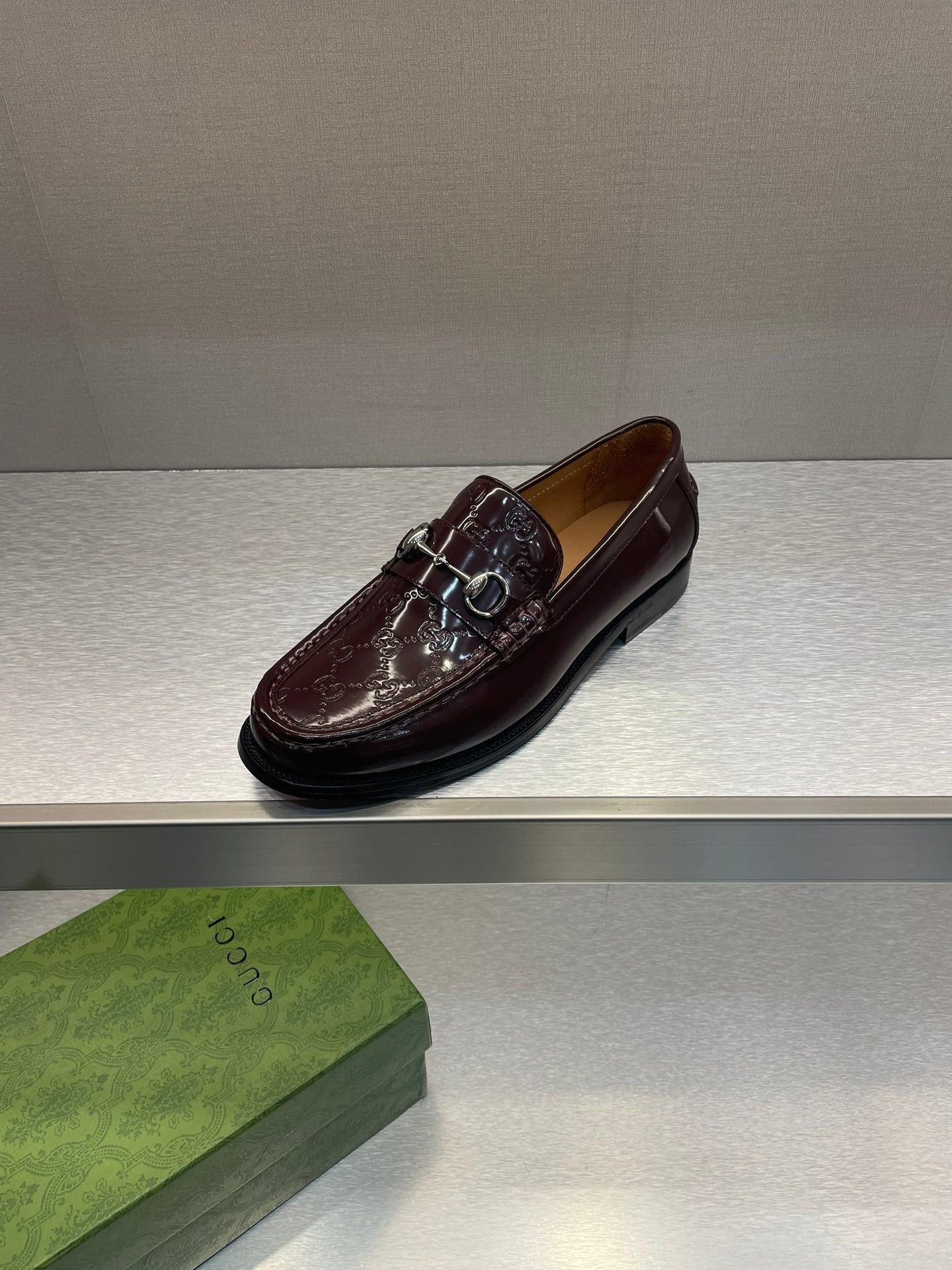 GG Men's Horsebit Loafer Brown Embossed Patent Leather 542448