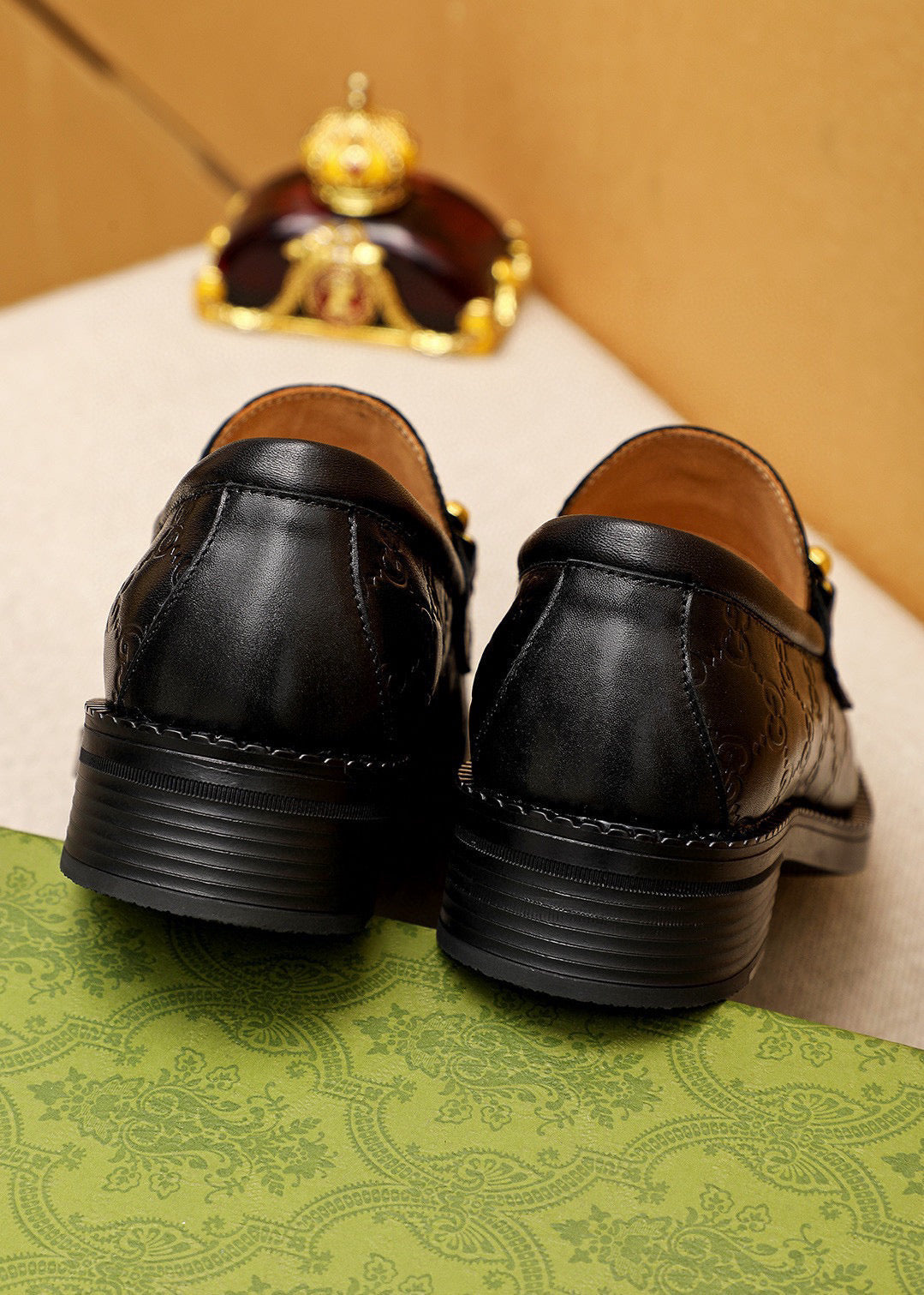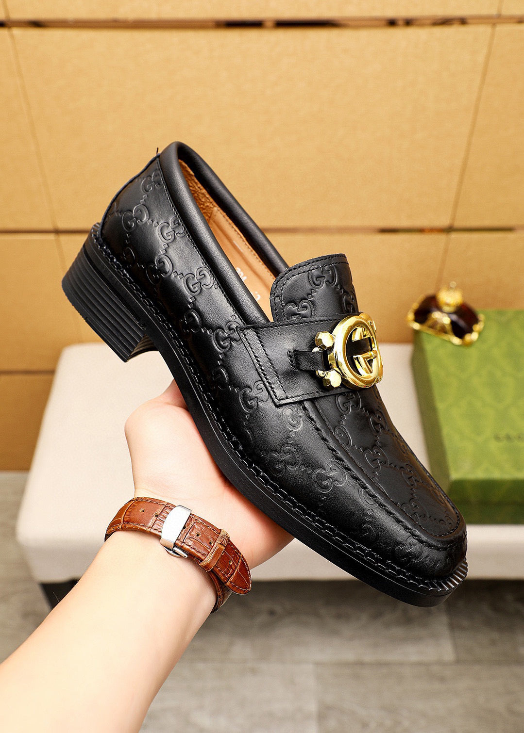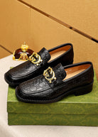 GG Men's Loafer Black GG Gold Embossed Cowhide 736976