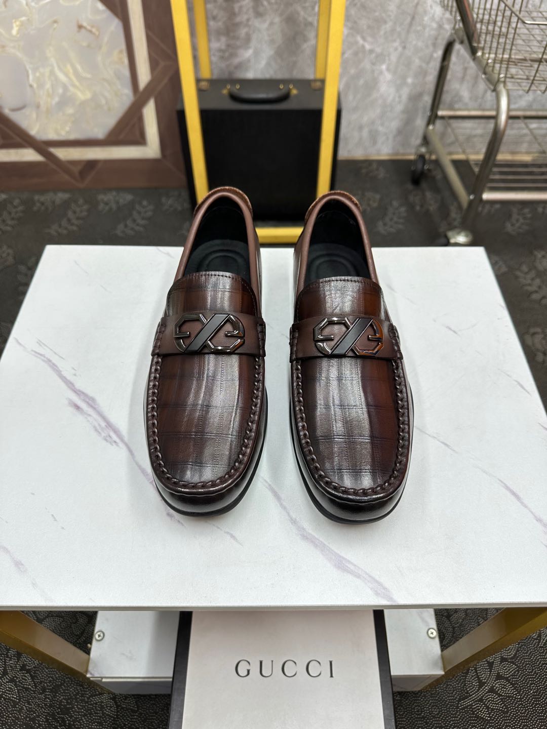 GG Men's Loafer Brown Embossed Cowhide 532511