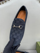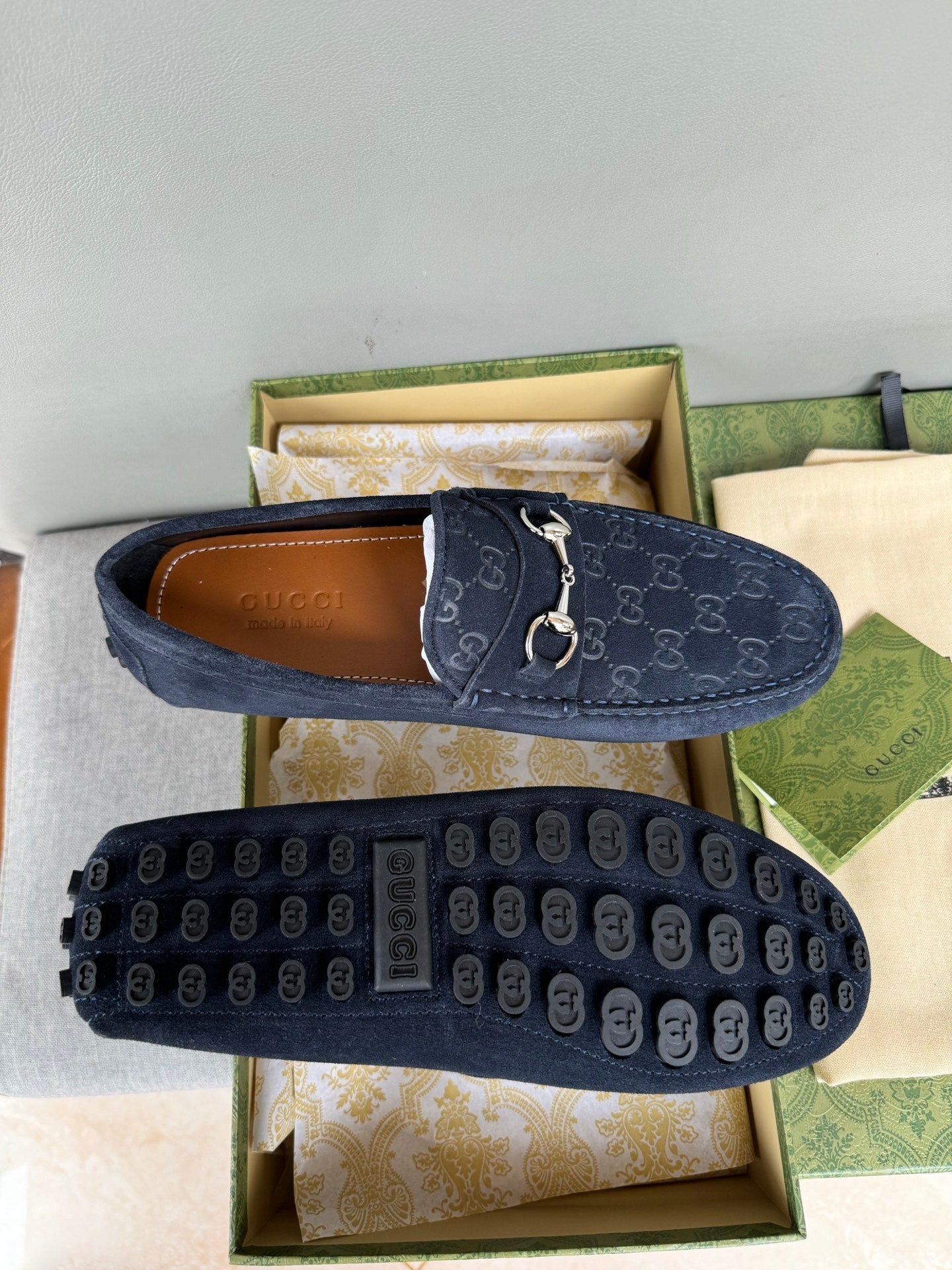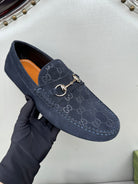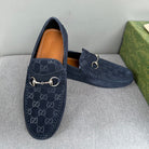 GG Men's Loafer Navy Blue Embossed Suede 555384