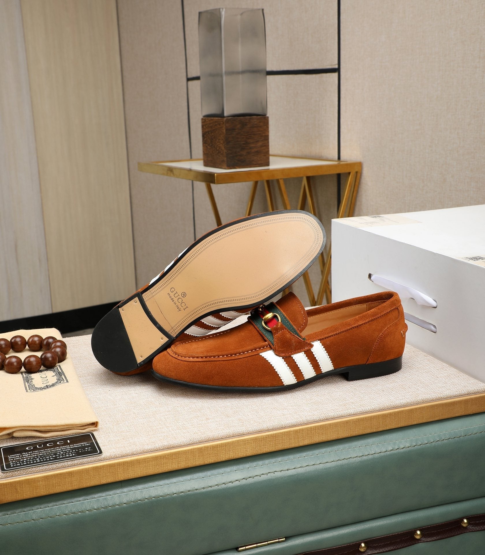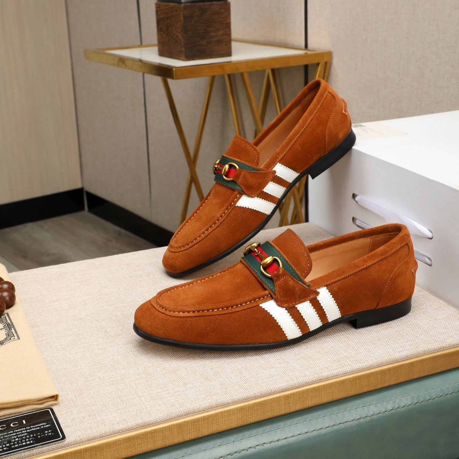 GG x Adidas Men's Jordaan Loafer Light Brown Suede 456614