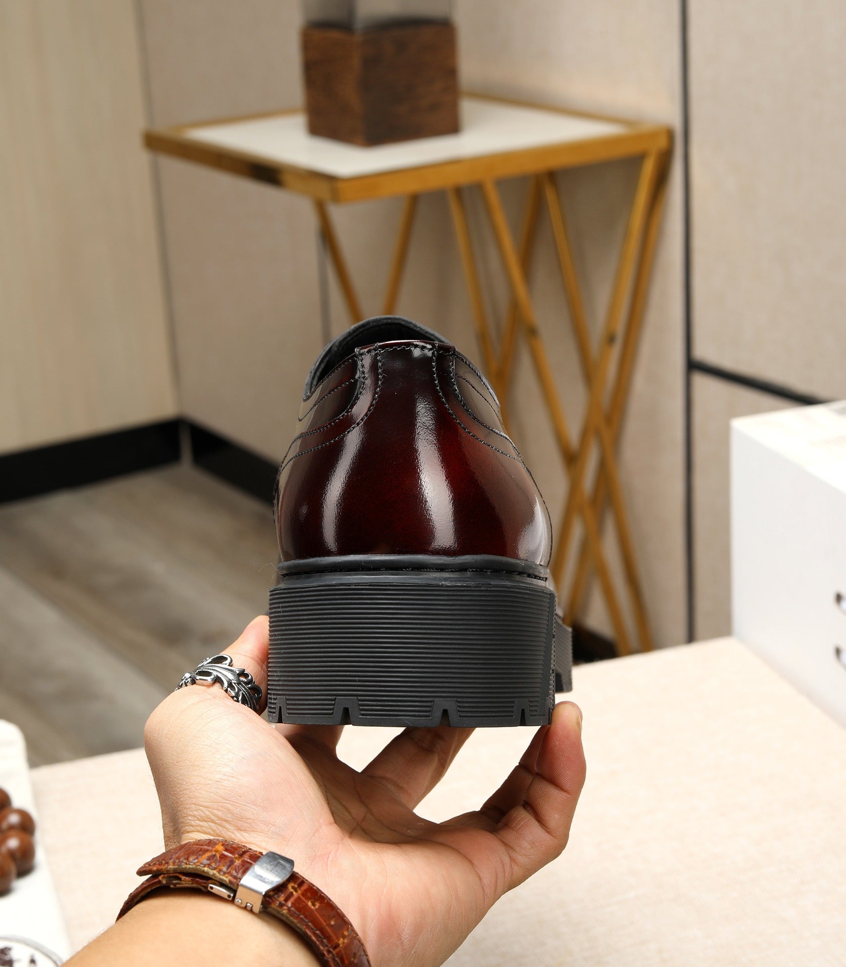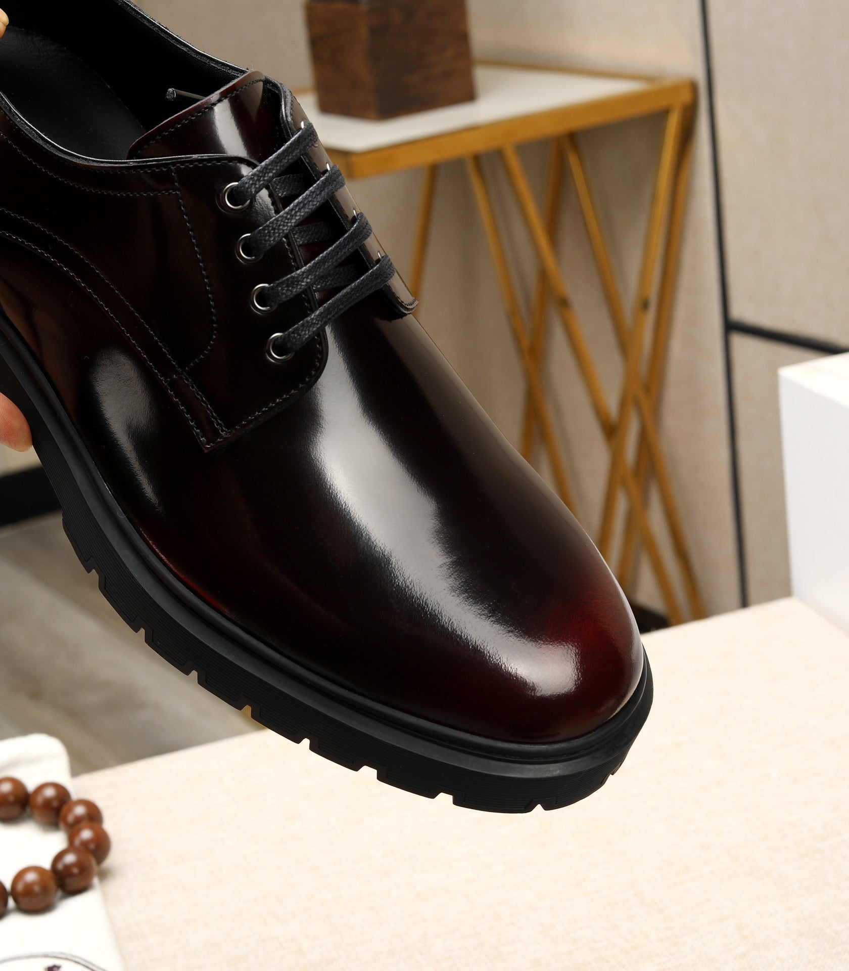 HM Men's Derby Shoes Black Mix Red Calfskin 731290