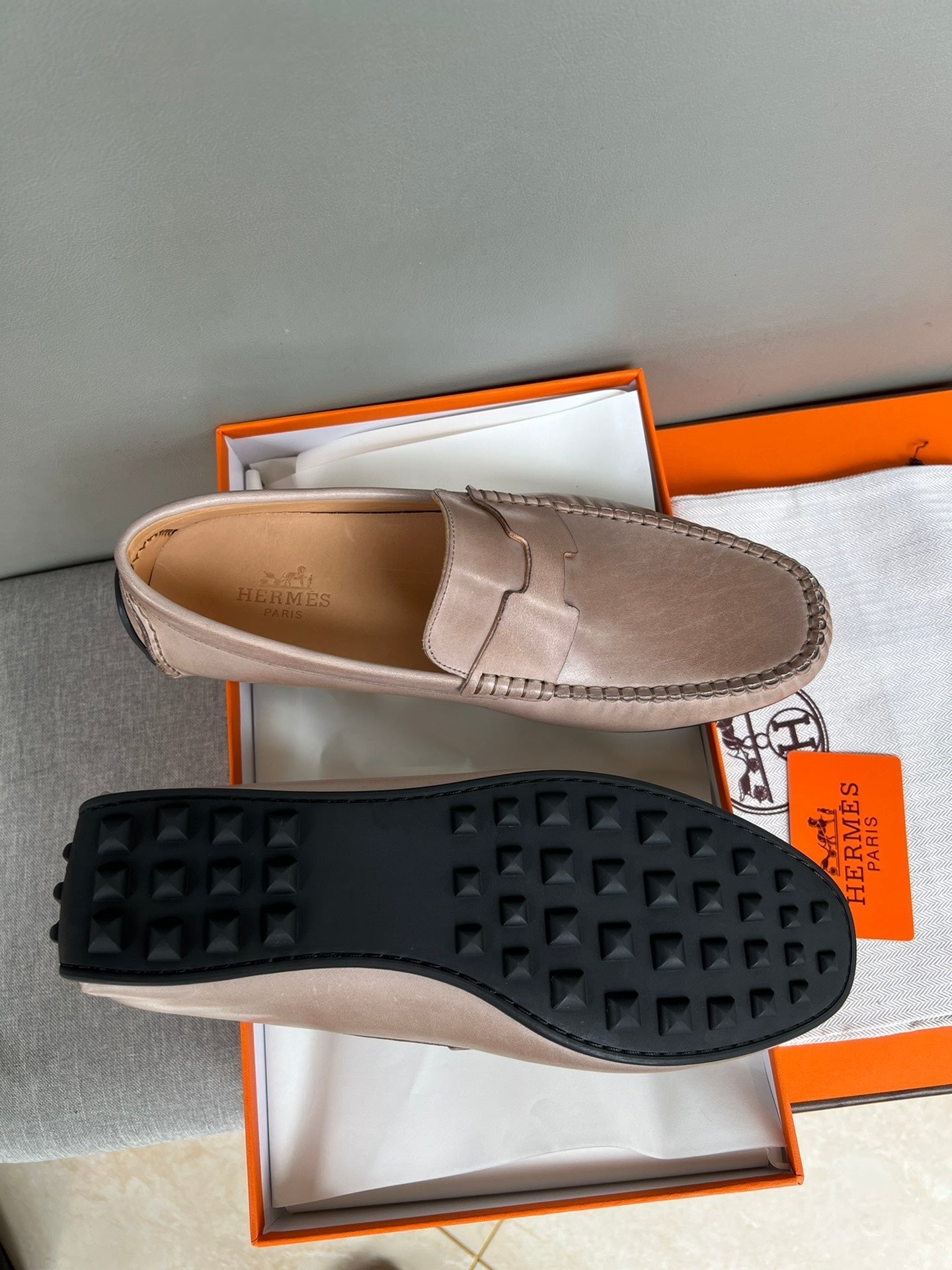 HM Men's Moccasins Loafer Pink Nude Cowhide 565857