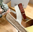 Loew Anagram Yellow Brown Leather And Canvas Espadrille Sandals