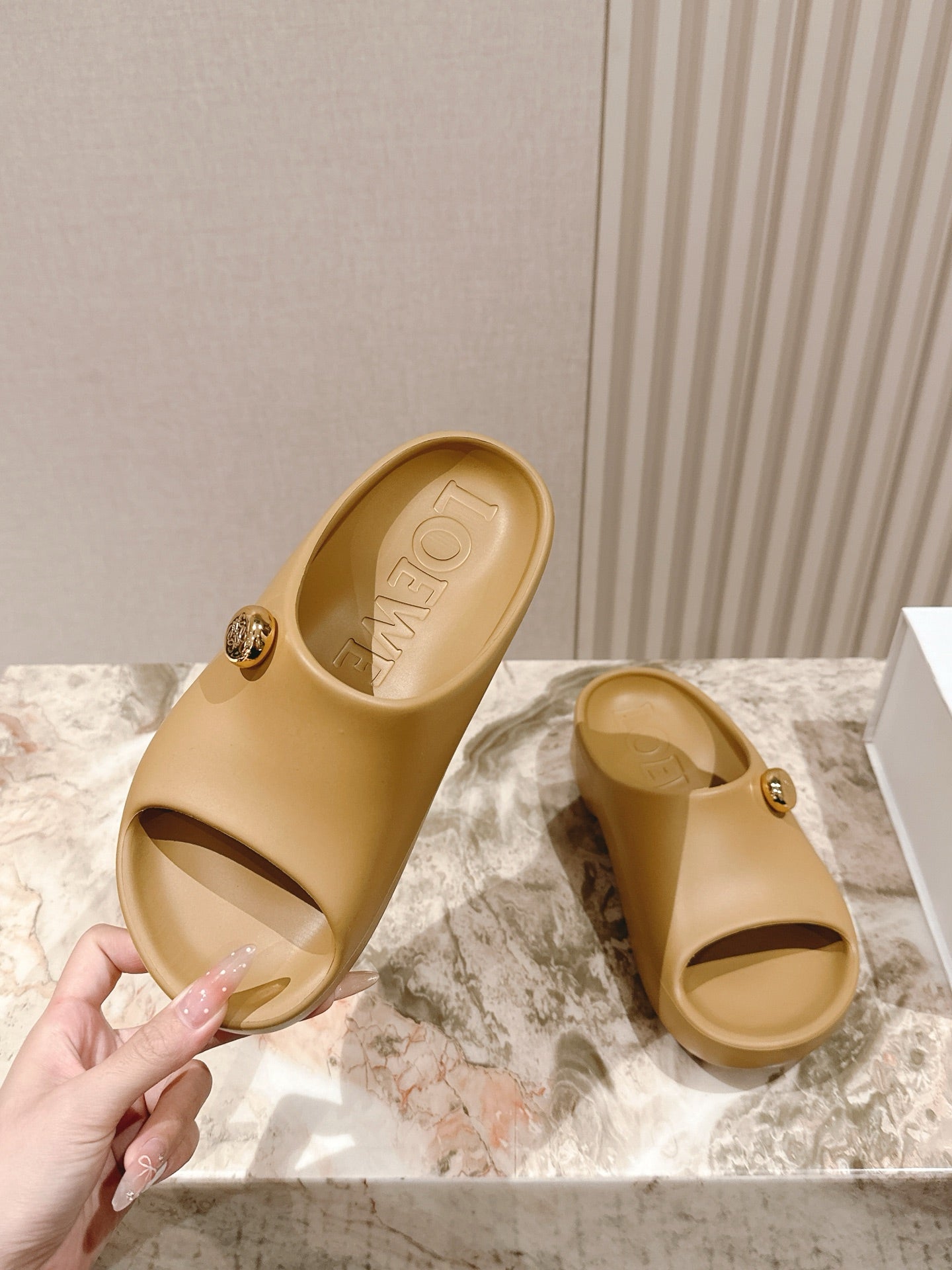 Loewe 25 Foam Pebble Slide Brown Rubber