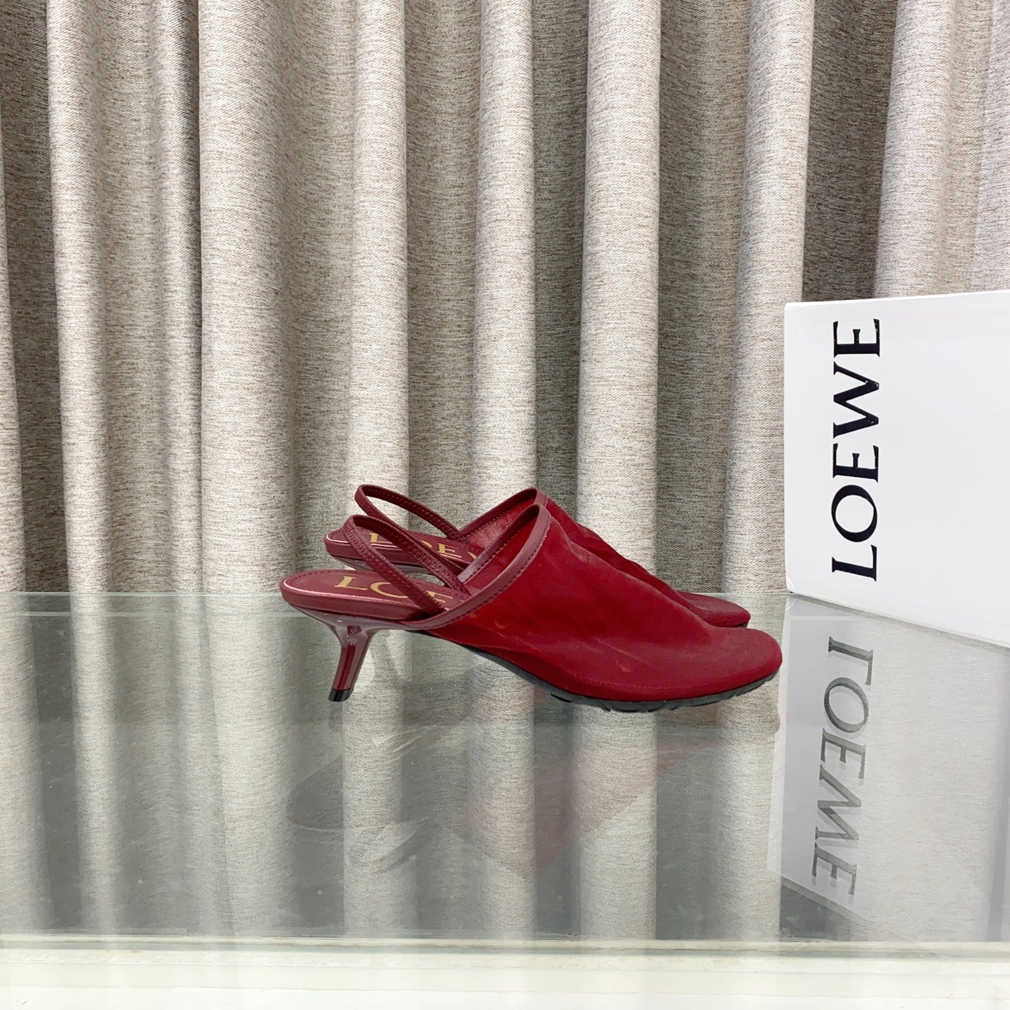 Loewe 25 Petal Slingback Red Mesh Sheepskin