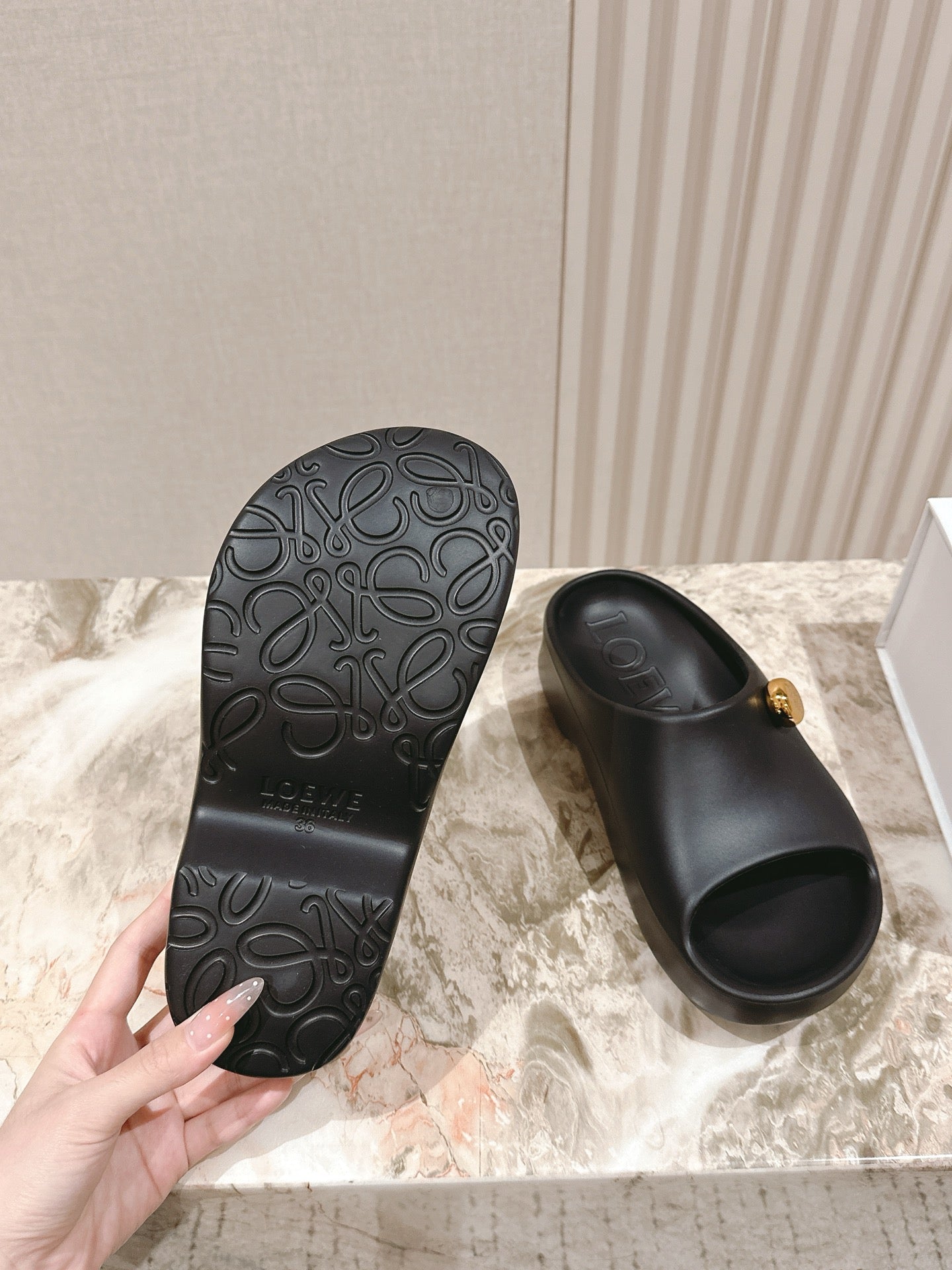 Loewe Foam Pebble Slide Black Rubber 306796