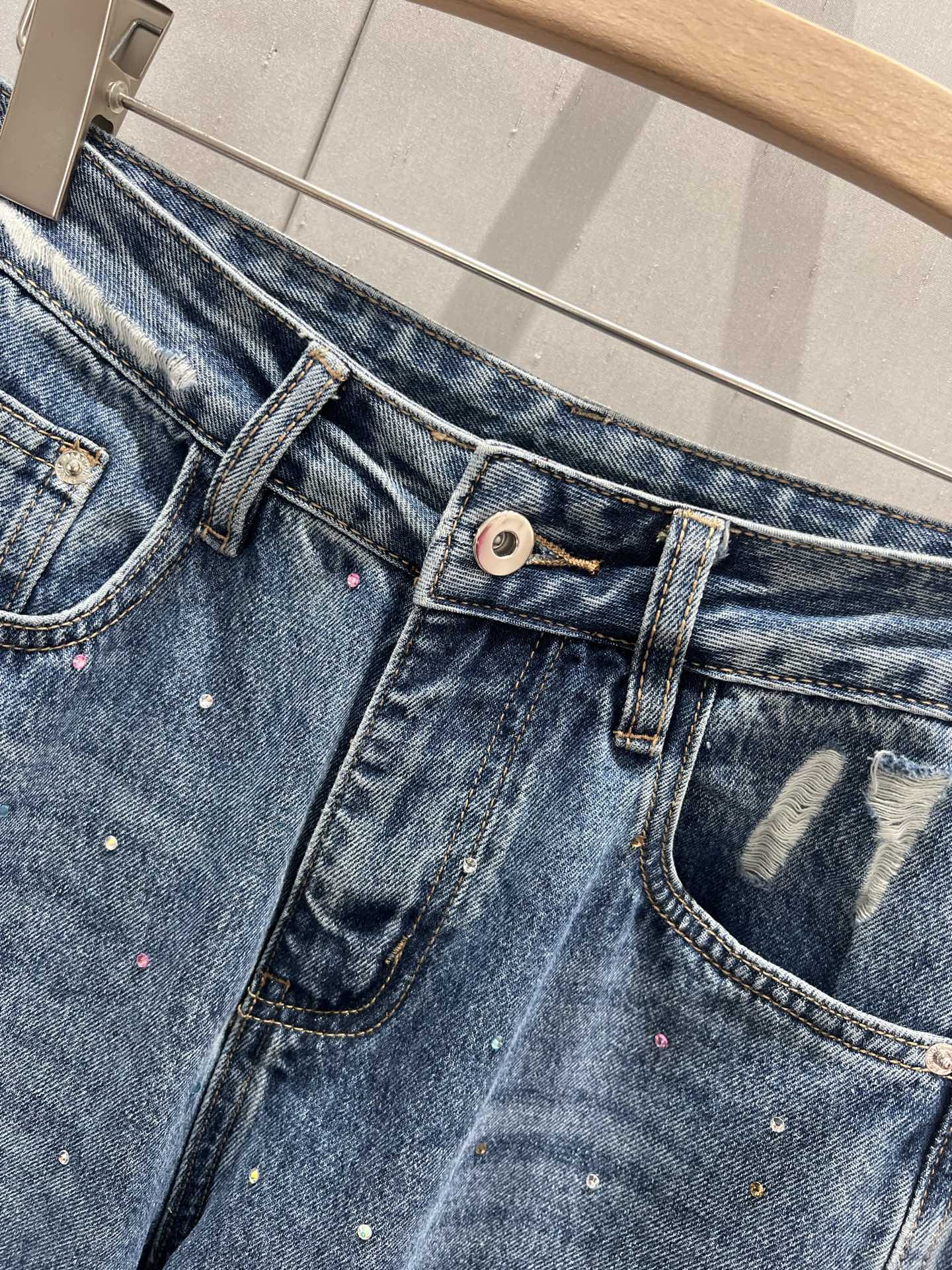 Loewe 25 Diamond Hole Straight Jeans Blue Cotton 217426