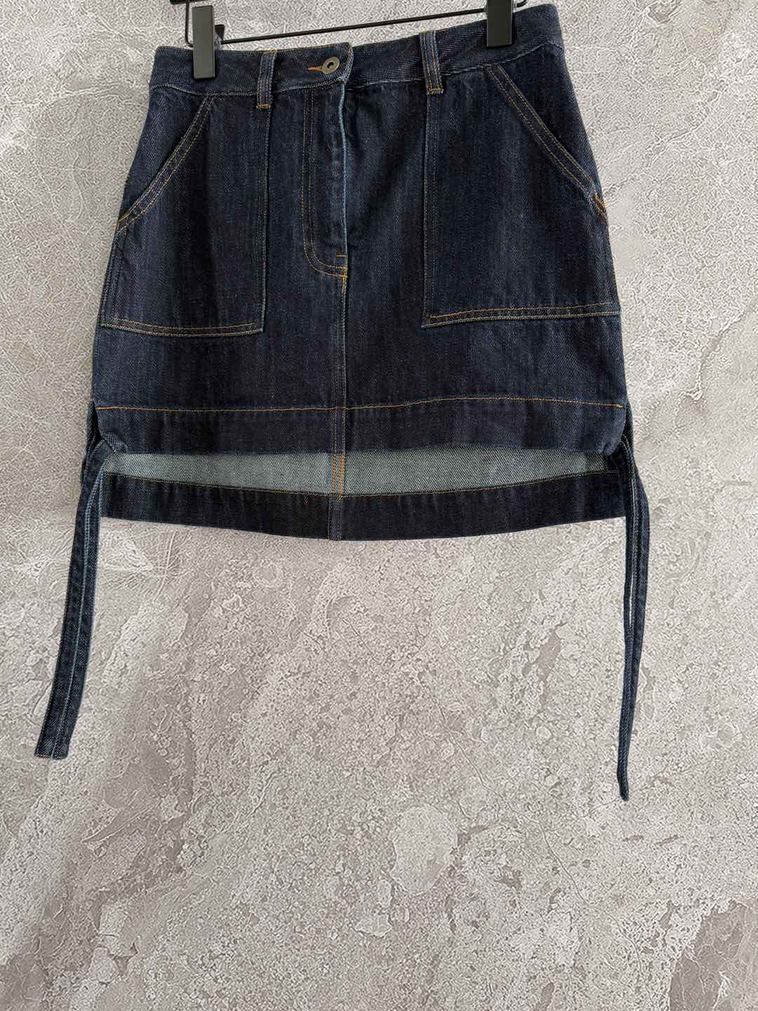 Loewe Pocket Leather Skirt Dark Blue Denim Cotton