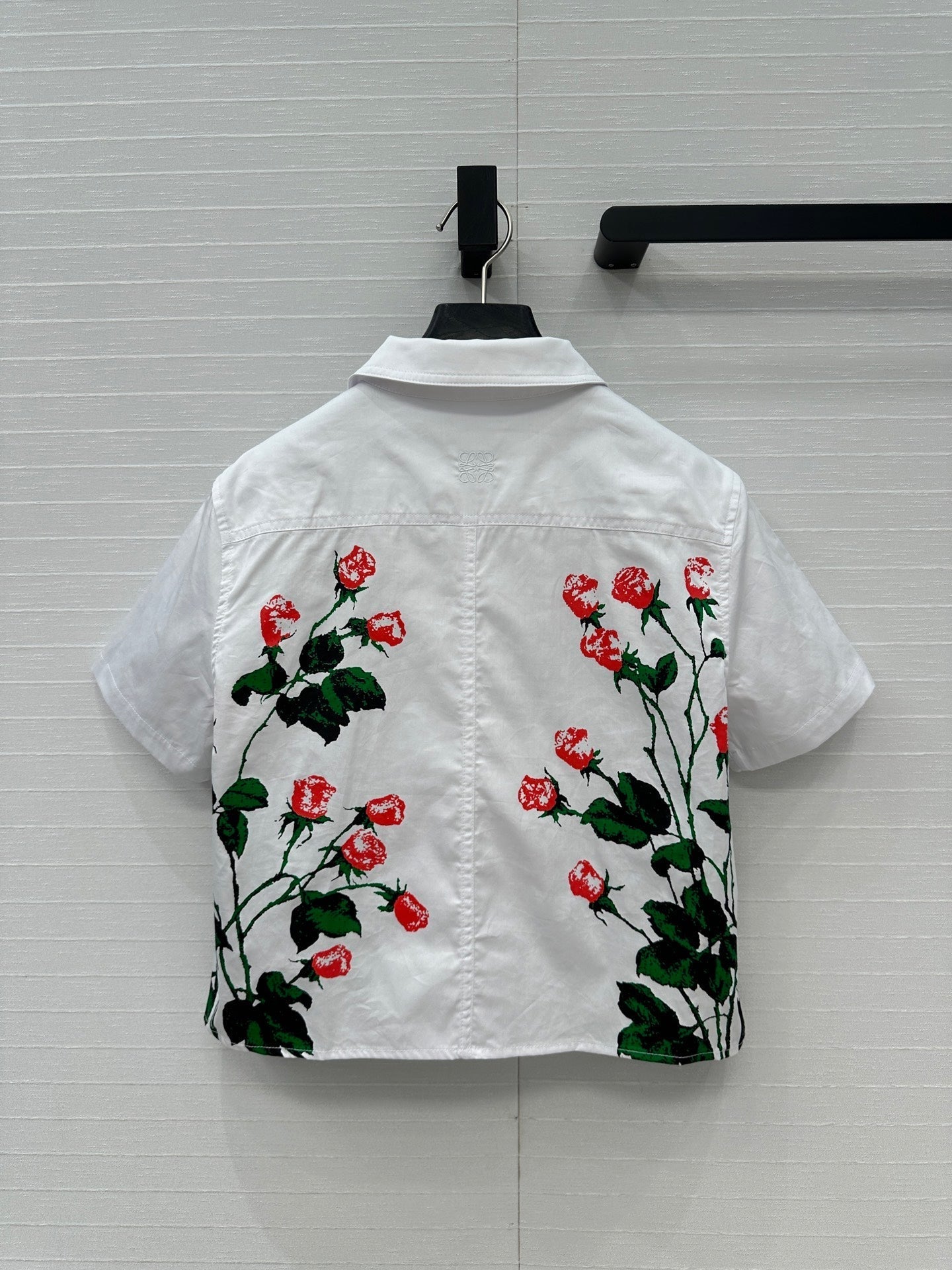 Loewe Rose Print Short-sleeved Shirt White Cotton