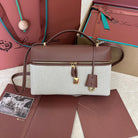 EXTRA BAG L27 IN WHITE CANVAS AND RED BROWN CALFSKIN WITH GOLD HARDWARE