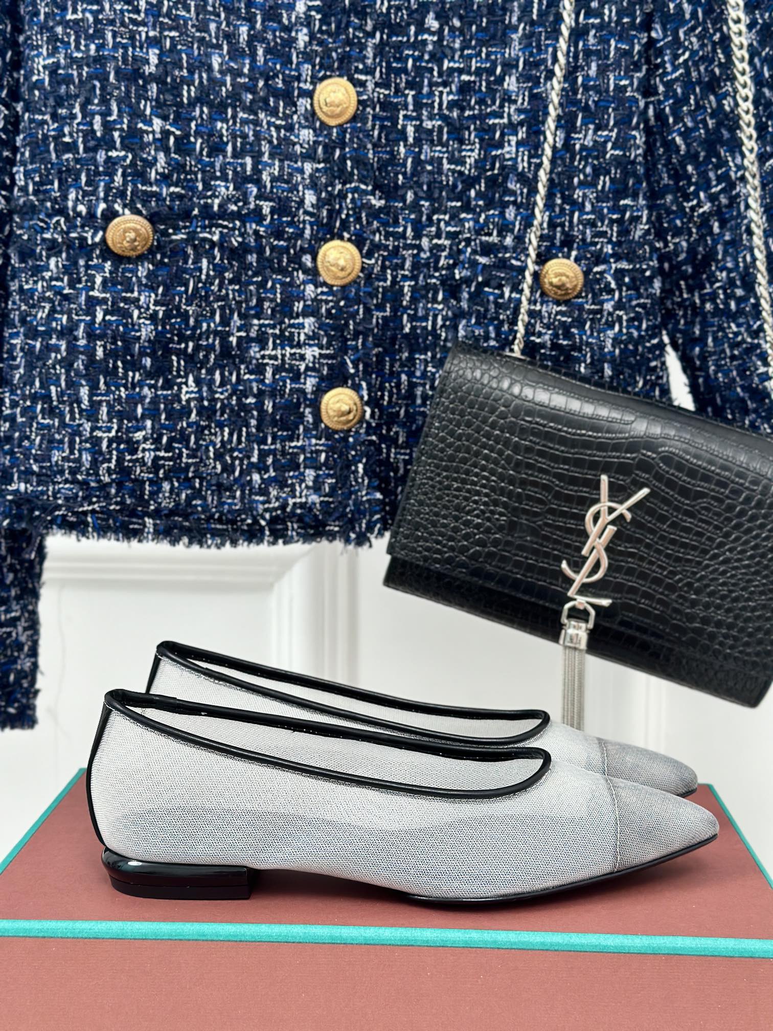 LP Primula Ballet Flat In White Mix Black Mesh Fabric With Suede Lining 989402
