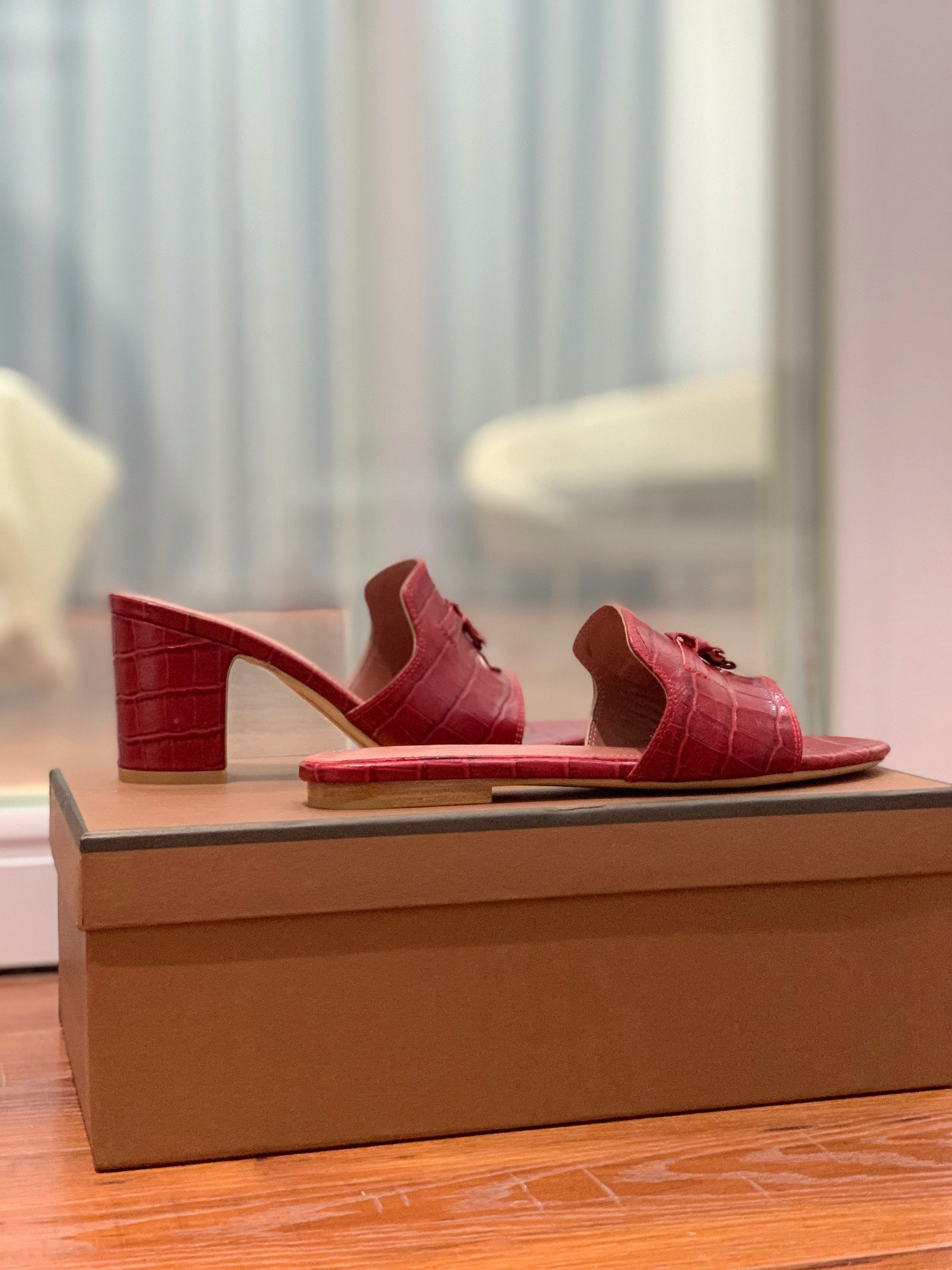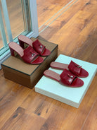 Summer Charms Sandals Mule Maroon Crocodile Pattern Pink Lambskin