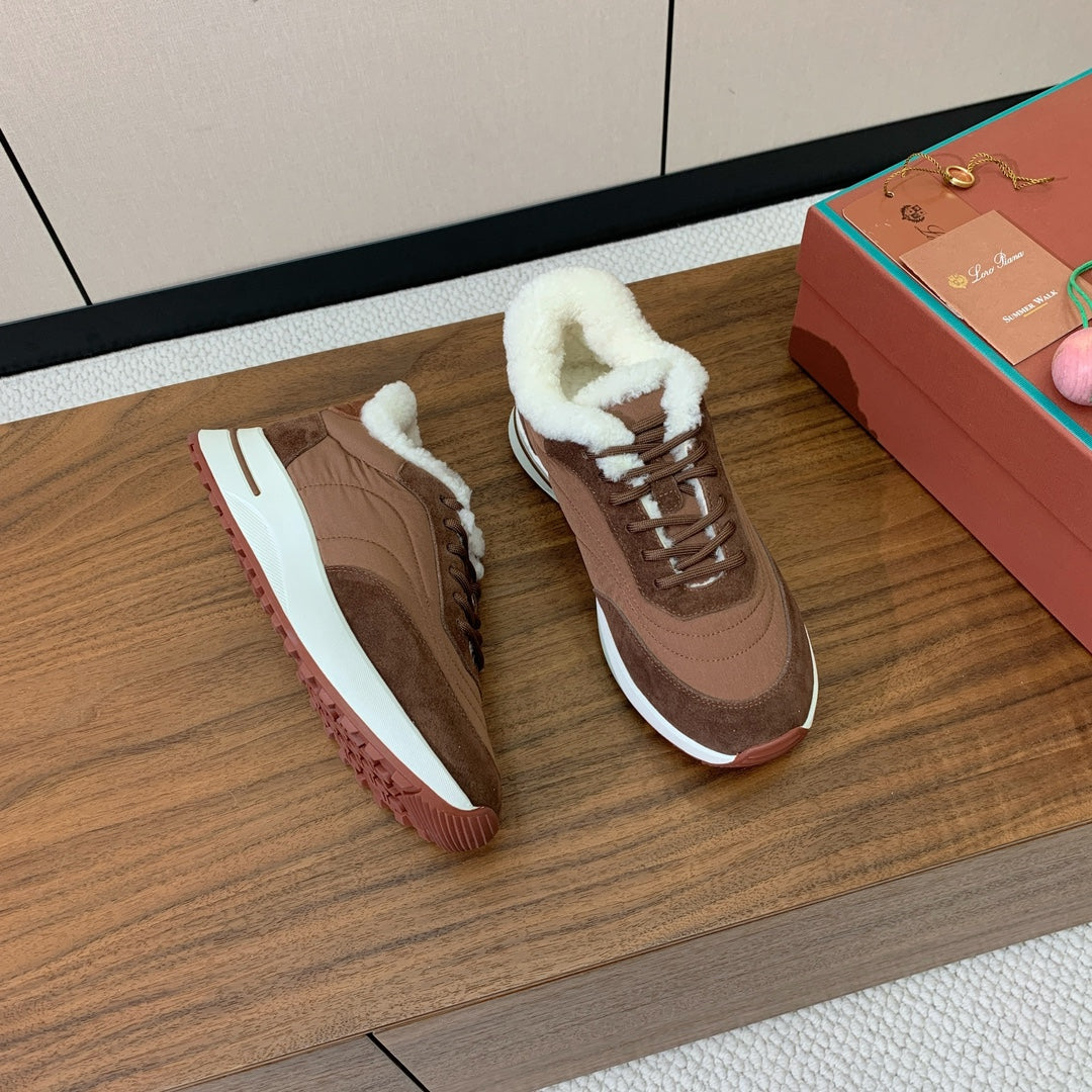 LP Week-end Walk Sneakers In Tawny Mix Earth Brown Denim With Wool Fleece Lining 984280